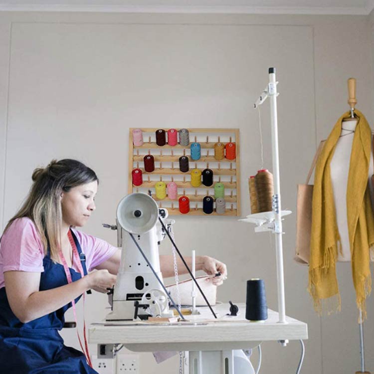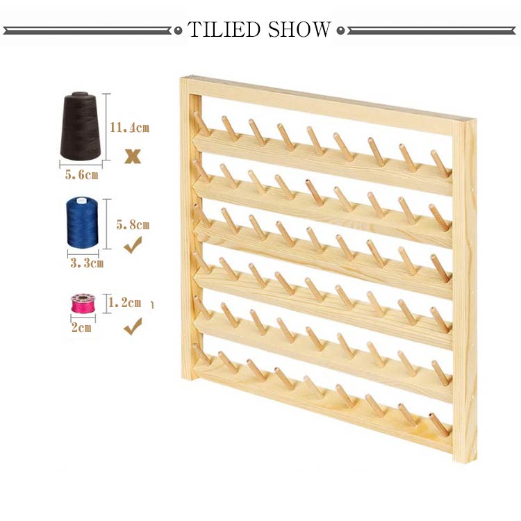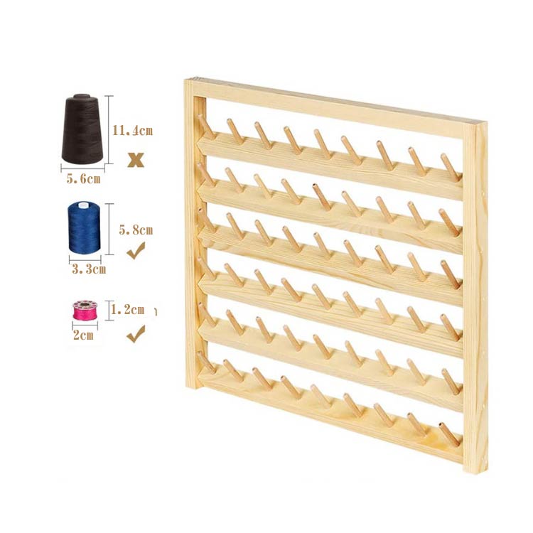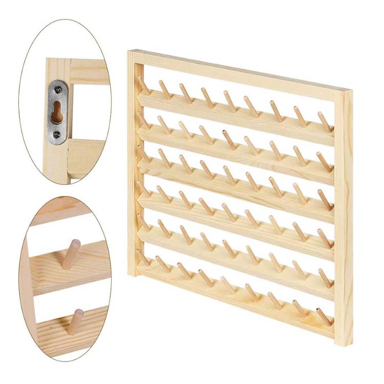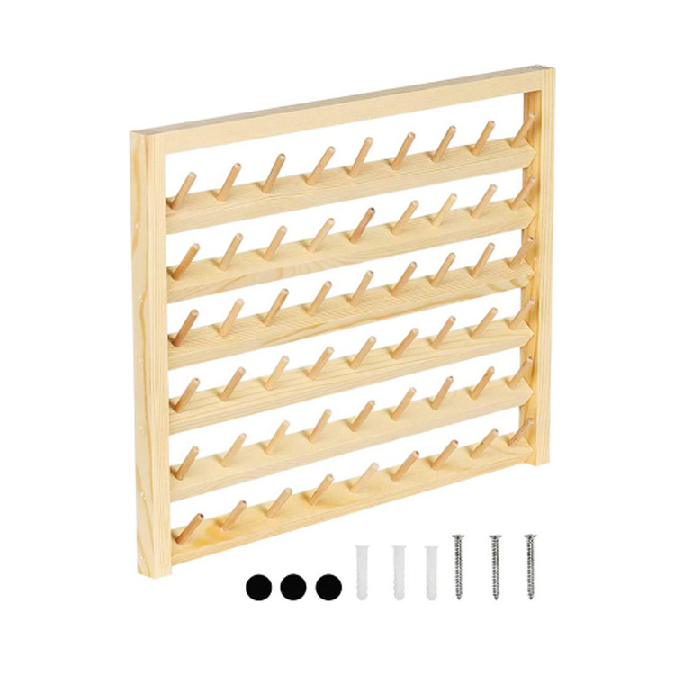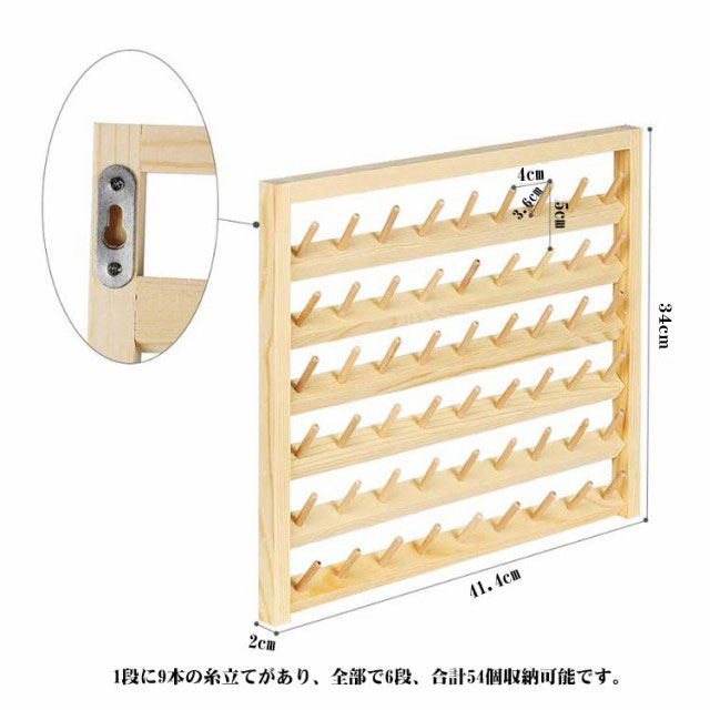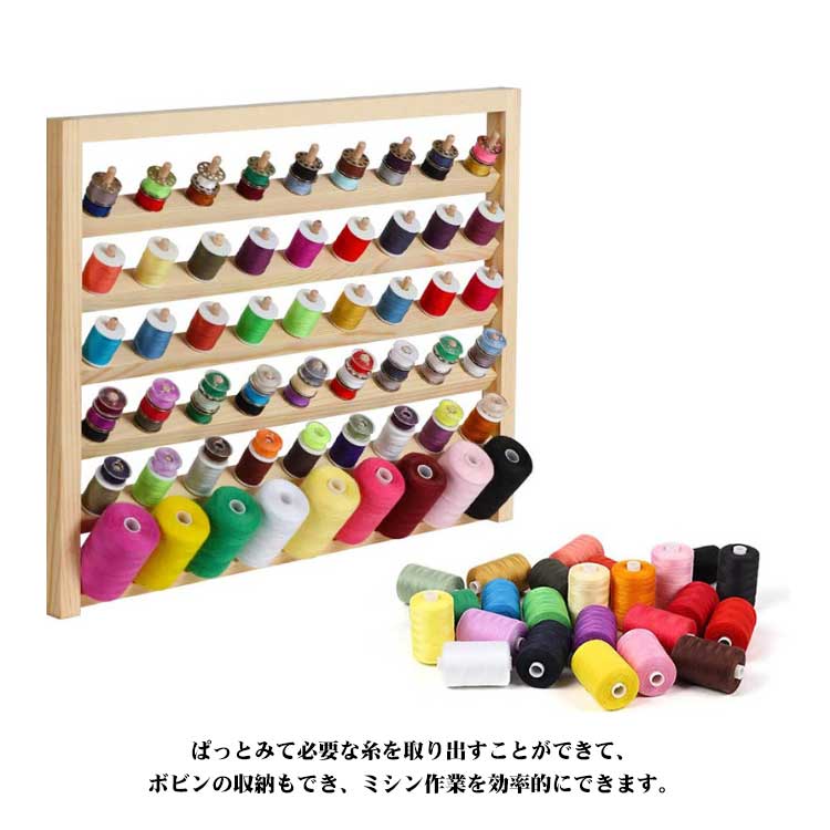 | 壁掛け式木製糸巻ラック。 54個のボビンがかけられる糸巻ホルダー、壁掛けタイプでスペースを取らず、大量の糸を収納できます。 1段に9本の糸立てがあり、全部で6段、合計54個収納可能です。ぱっとみて必要な糸を取り出すことができて、ボビンの収納もでき、ミシン作業を効率的にできます。 ミシンの糸の整理整頓にお勧めの糸巻ラック、色の系統ごとに整理もできますので、大好きな裁縫がより楽しくできます。 指輪やヘアゴム、ジュエリー、腕飾り、ネックレスなどのディスプレイ、保管にもおすすめです。 | |