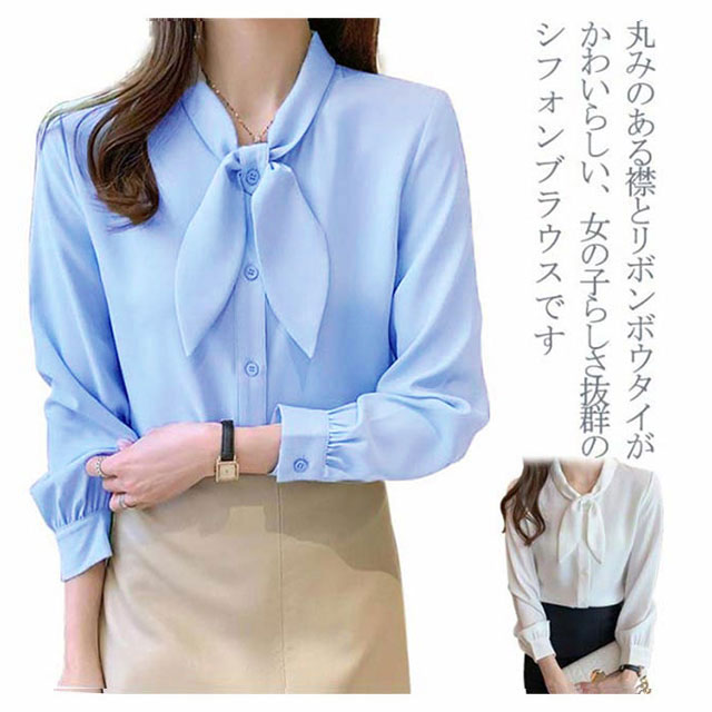 送料無料 フォーマル リボン シフォンブラウス スーツ ブラウス トップス ボウタイ シフォン オフィス シフォンブラウス レディース 長袖 スーツインナー フォーマルブラウス