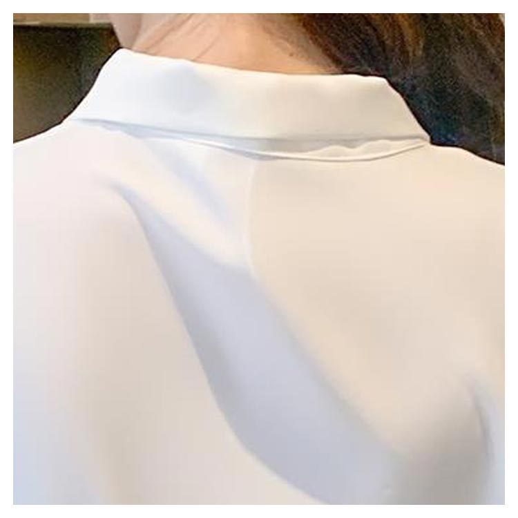| 丸みのある襟とリボンボウタイがかわいらしい、女の子らしさ抜群のシフォンブラウスです。 ネクタイをはずしてブラウスのみでも着られるほか、トップスインでもアウトでもかわいく着られる仕様になっています。 シンプルなデザインで、スカートはもちろんパンツスタイルにも合わせやすく、カジュアルからきれいめ、オフィススタイルにもお使いいただけます。 オールシーズン着まわせるシフォン素材で着回し力抜群!1着は持っていたいアイテムです。 | |