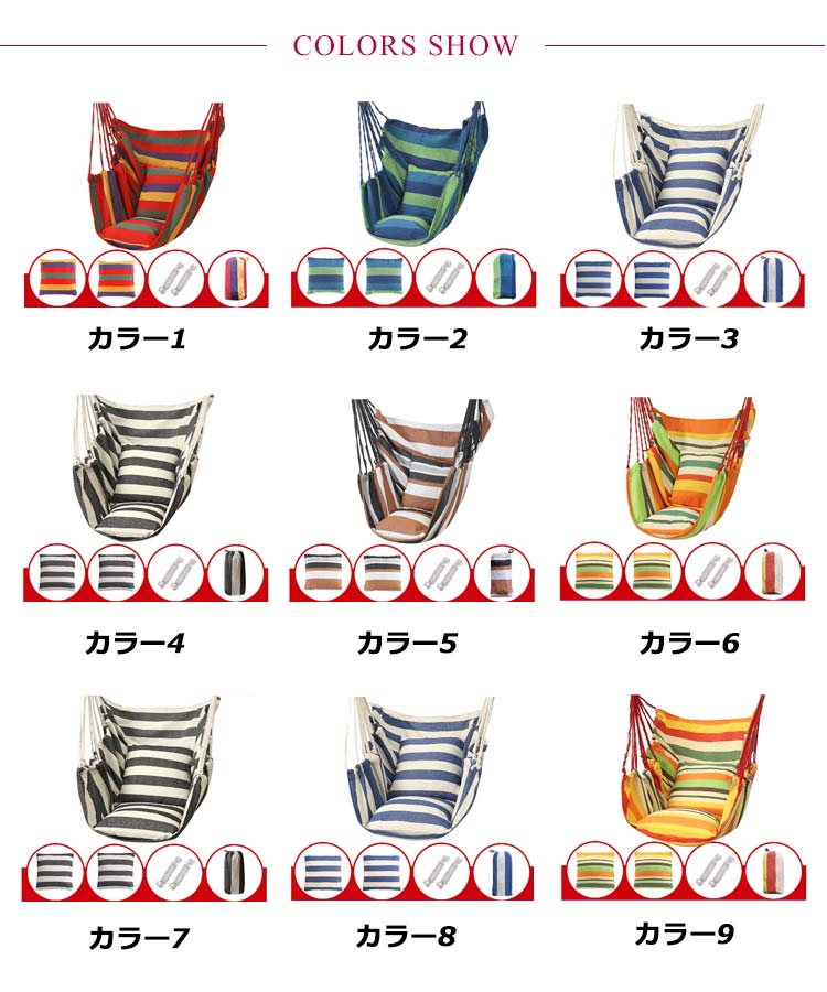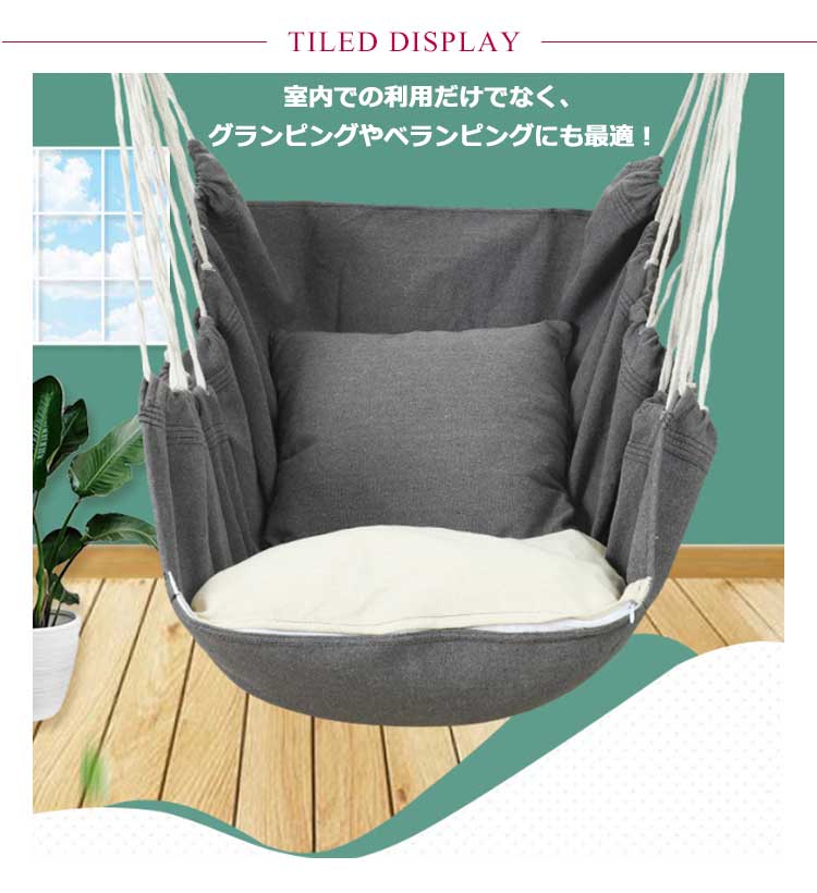 | 【吊り下げ式】【ハンモックチェア】【枕2個付き】【収納袋付き】 室内での利用だけでなく、グランピングやベランピングにも最適! キャンパス地のナチュラルな雰囲気でどんなテイストの部屋にも合わせやすい。 おうちのなかでゆらゆらリラックス。包み込まれるような安心感を。 軽くてコンパクトに収納できるから、持ち運ぶ時も便利です。収納袋が付いているので、外出時にもとても便利です。 自宅、アウトドア、ビーチ、キャンプ、釣り、ハンモック泊、ソロキャンプ等々の場面に適用。 | |