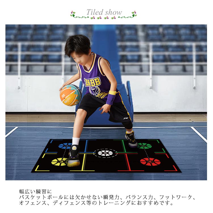 バスケットボール トレーニングマット バスケ練習用 マット 子供 子ども フットワークマット バスケ 練習道具 部活 スポーツ クラブ 練習 大人 学生 ボディハンドリング ドリブル 1on1 足 動き ディフェンス オフェンス 体幹 ウエイト 足音 練習グッズ 滑り止め 送料無料