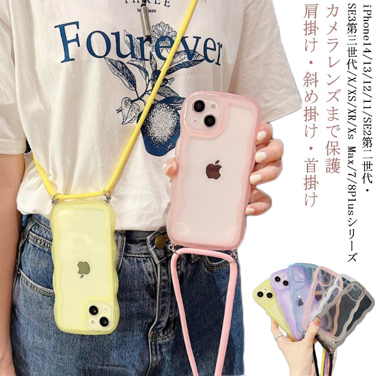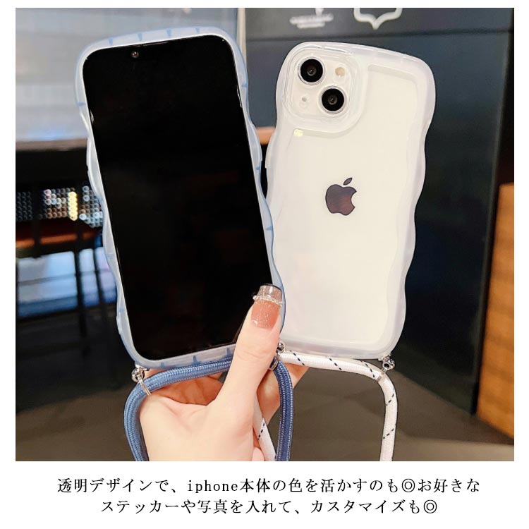 iPhone14 14 Plus 14 Pro Max ケース クリア ケース iPhone13 12 カバー SE2 SE3 波 ショルダーケース 送料無料 ショルダーストラップ付き iPhone11ケース アイフォン パステルカラー XR Xs max 可愛い ウェーブ
