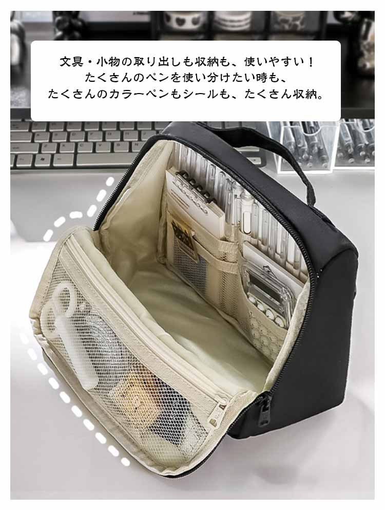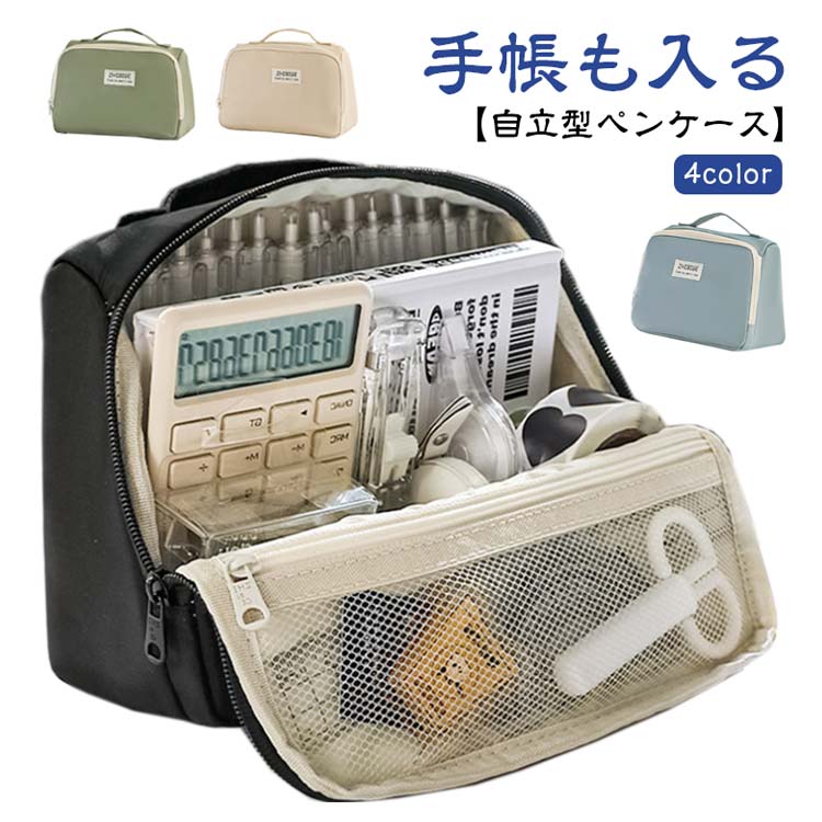 【自立型ペンケース】【手帳も入る】【4color】デスクの上で、そのまま立てて可愛く使えるので、文房具を使う時間が楽しく快適になること間違いなしです。文具・小物の取り出しも収納も、使いやすい!たくさんのペンを使い分けたい時も、たくさんのカラーペンもシールも、たくさん収納。誕生日プレゼント、入学祝い、クリスマスプレゼント、新年のプレゼント、学校のプレゼントなどとして使用できます。一袋を多く使って、鉛筆、万年筆、マーク、コンパス、定規などを整理して持ってもいいです。仕事に必要な道具をまとめて収納できるから、オフィス勤務の日はこのままバッグインバッグとして通勤バッグに入れて持ち出してもOK。こんな方におすすめです。・たくさん入るペンケースをそのまま立てて使いたい!・手帳も文房具も、全部ひとつにまとめたい!・使いたいお気に入りの文房具がたくさんある!