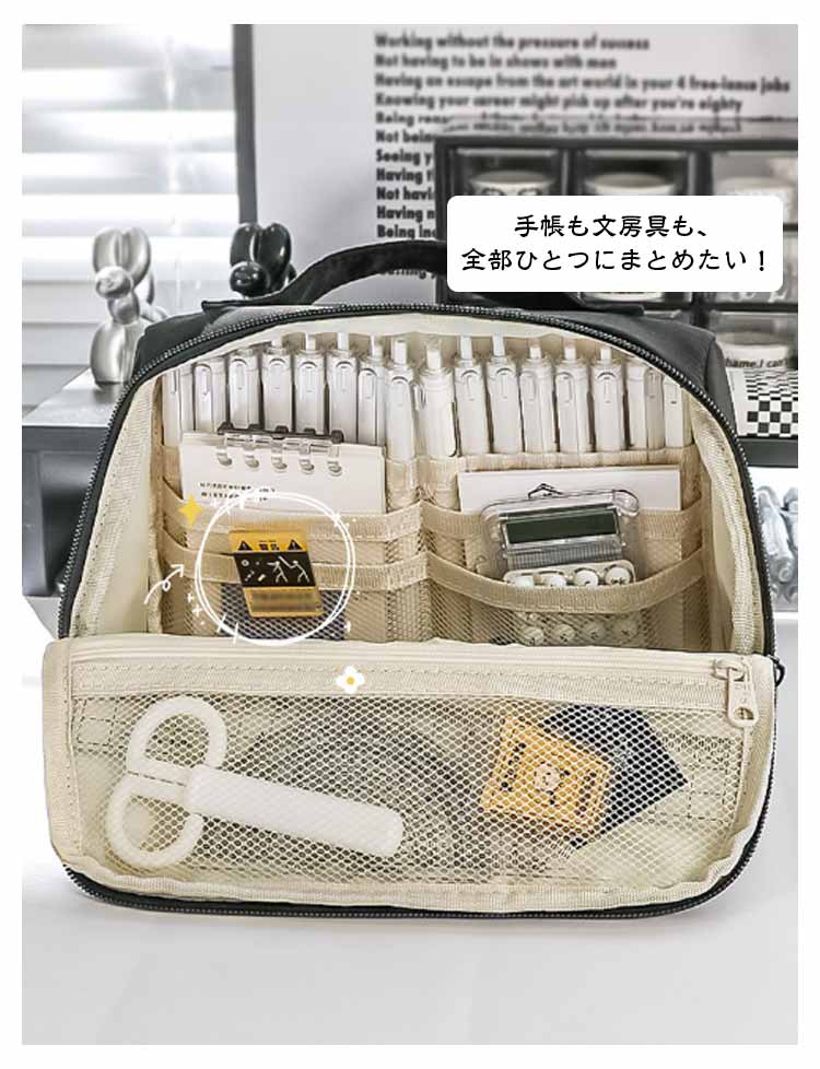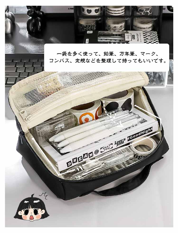 | 【自立型ペンケース】【手帳も入る】【4color】 デスクの上で、そのまま立てて可愛く使えるので、文房具を使う時間が楽しく快適になること間違いなしです。 文具?小物の取り出しも収納も、使いやすい!たくさんのペンを使い分けたい時も、たくさんのカラーペンもシールも、たくさん収納。 誕生日プレゼント、入学祝い、クリスマスプレゼント、新年のプレゼント、学校のプレゼントなどとして使用できます。 一袋を多く使って、鉛筆、万年筆、マーク、コンパス、定規などを整理して持ってもいいです。 仕事に必要な道具をまとめて収納できるから、オフィス勤務の日はこのままバッグインバッグとして通勤バッグに入れて持ち出してもOK。 こんな方におすすめです。 ?たくさん入るペンケースをそのまま立てて使いたい! ?手帳も文房具も、全部ひとつにまとめたい! ?使いたいお気に入りの文房具がたくさんある! | |