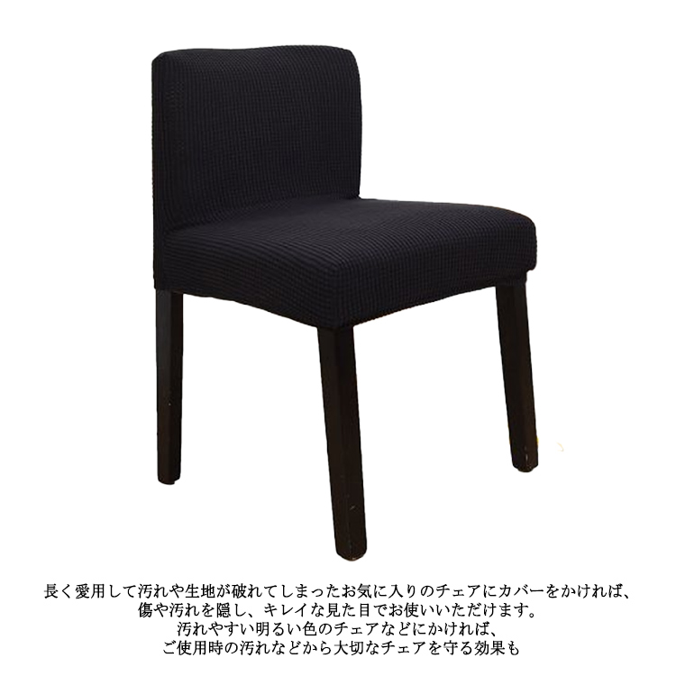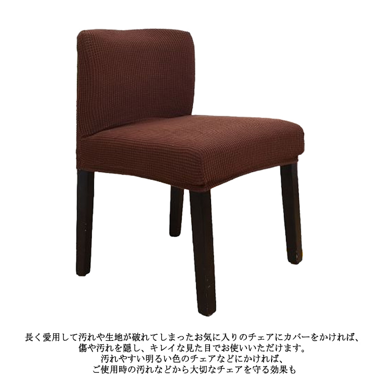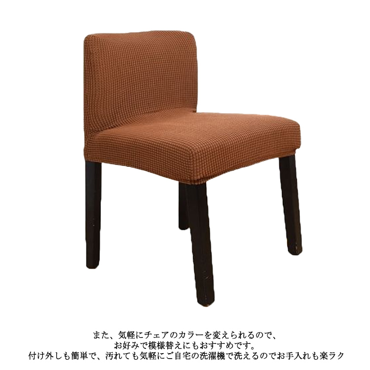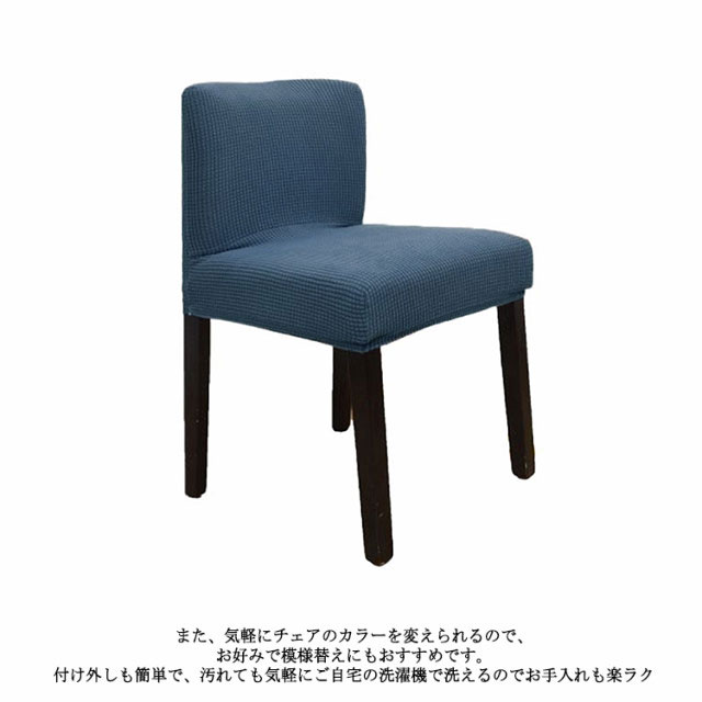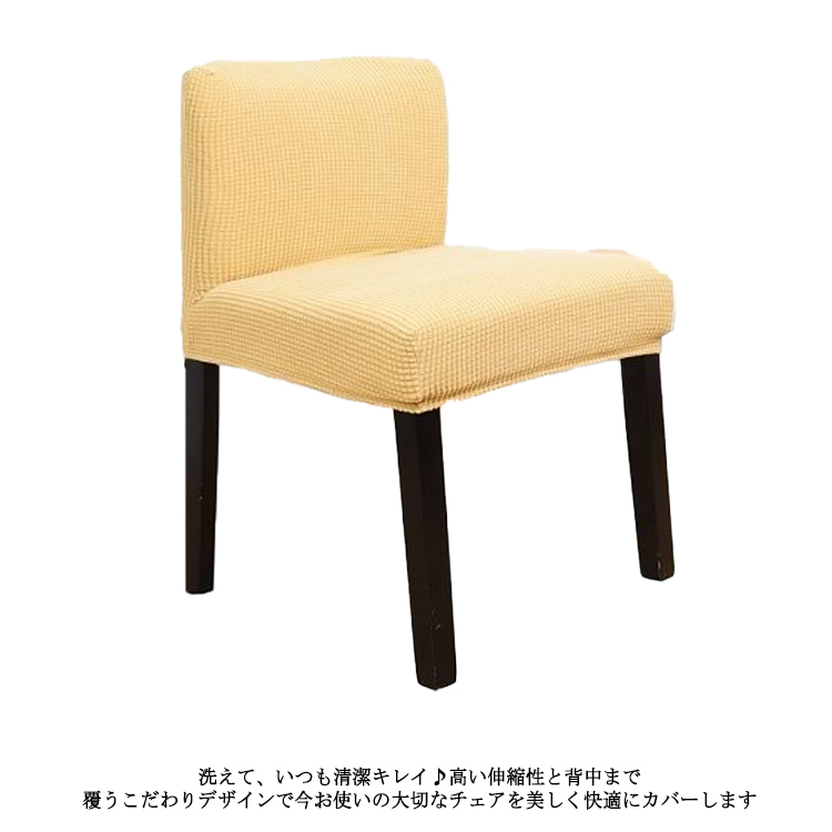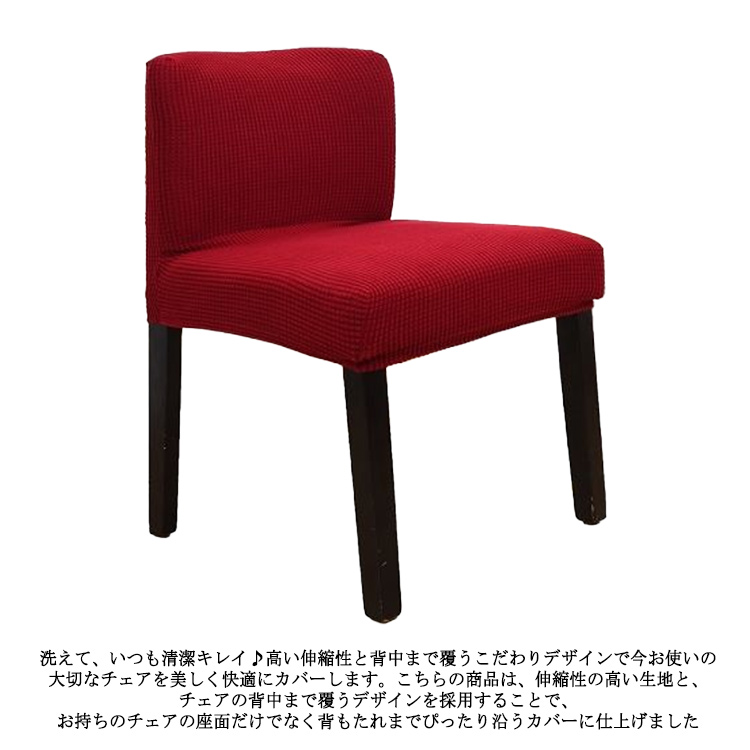 伸縮性の高い生地と、チェアの背中まで覆うデザインを採用することで、お持ちのチェアの座面だけでなく背もたれまでぴったり沿うカバーに仕上げました。 長く愛用して汚れや生地が破れてしまったお気に入りのチェアにカバーをかければ、傷や汚れを隠し、キレイな見た目でお使いいただけます。汚れやすい明るい色のチェアなどにかければ、ご使用時の汚れなどから大切なチェアを守る効果も。また、気軽にチェアのカラーを変えられるので、お好みで模様替えにもおすすめです。付け外しも簡単で、汚れても気軽にご自宅の洗濯機で洗えるのでお手入れも楽ラク。洗えて、いつも清潔キレイ♪高い伸縮性と背中まで覆うこだわりデザインで今お使いの大切なチェアを美しく快適にカバーします。こちらの商品は、伸縮性の高い生地と、チェアの背中まで覆うデザインを採用することで、お持ちのチェアの座面だけでなく背もたれまでぴったり沿うカバーに仕上げました。 長く愛用して汚れや生地が破れてしまったお気に入りのチェアにカバーをかければ、傷や汚れを隠し、キレイな見た目でお使いいただけます。汚れやすい明るい色のチェアなどにかければ、ご使用時の汚れなどから大切なチェアを守る効果も。また、気軽にチェアのカラーを変えられるので、お好みで模様替えにもおすすめです。付け外しも簡単で、汚れても気軽にご自宅の洗濯機で洗えるのでお手入れも楽ラク。洗えて、いつも清潔キレイ♪高い伸縮性と背中まで覆うこだわりデザインで今お使いの大切なチェアを美しく快適にカバーします。