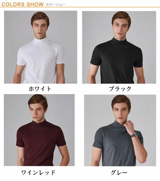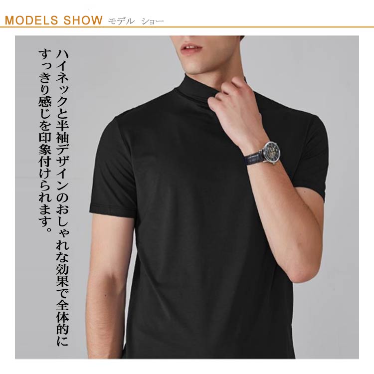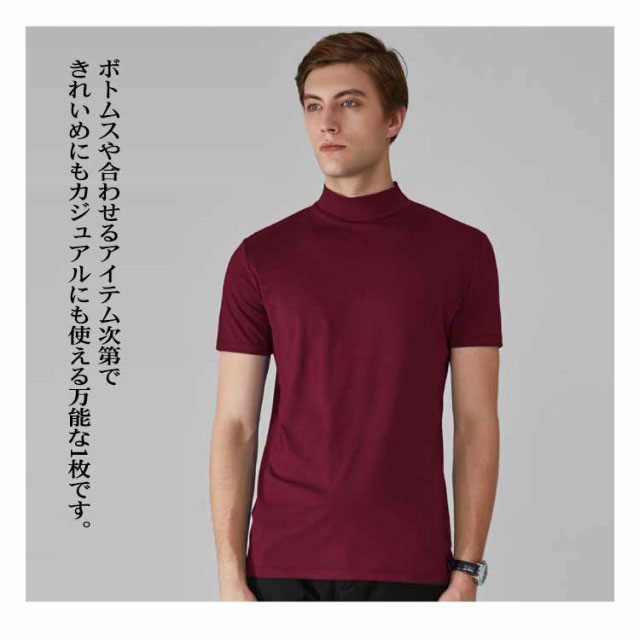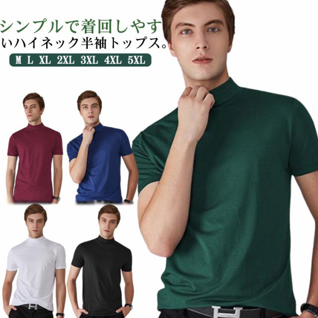 ハイネック tシャツ メンズ 半袖 tシャツ 無地 カットソー 夏 モックネック tシャツ ティーシャツ ゴルフtシャツ ゴルフウェア カジュアル シンプル ビジネス オフィス 普段着 夏 夏服 送料無料