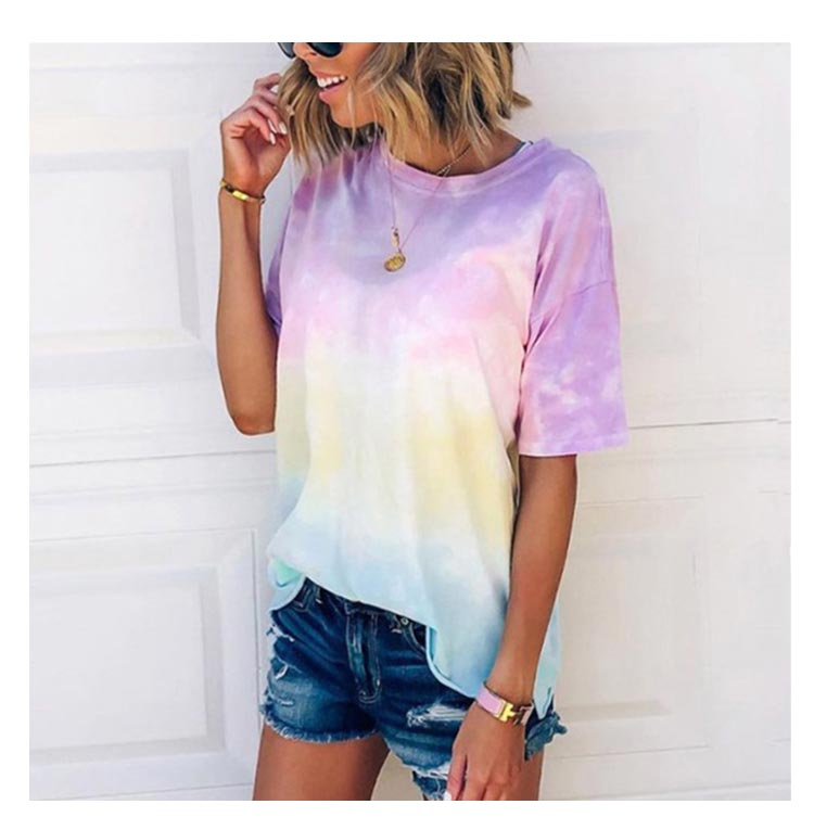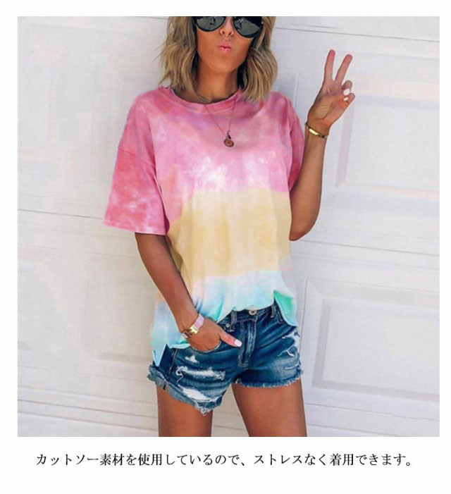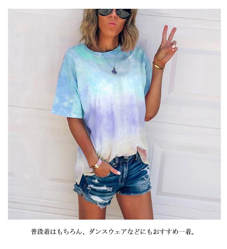 タイダイ染めTシャツ カットソー レディース 半袖 タイダイ染め Tシャツ トップス タイダイ クルーネック ヒップホップ 大きいサイズ アジアン エスニック フェス ダンスウェア ダンス衣装 送料無料 ファッション 原宿