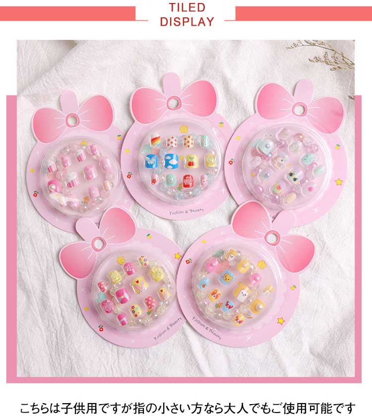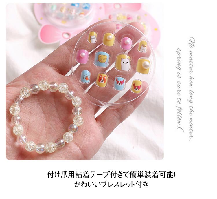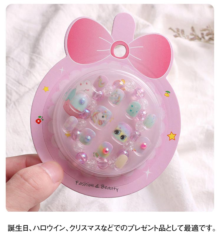 | お洒落キッズが大好きなネイル? 貼るだけでネイルが完成! 付け爪用粘着テープ付きで簡単装着可能!かわいいブレスレット付き こちらは子供用ですが指の小さい方なら大人でもご使用可能です 誕生日、ハロウイン、クリスマスなどでのプレゼント品として最適です。 | |