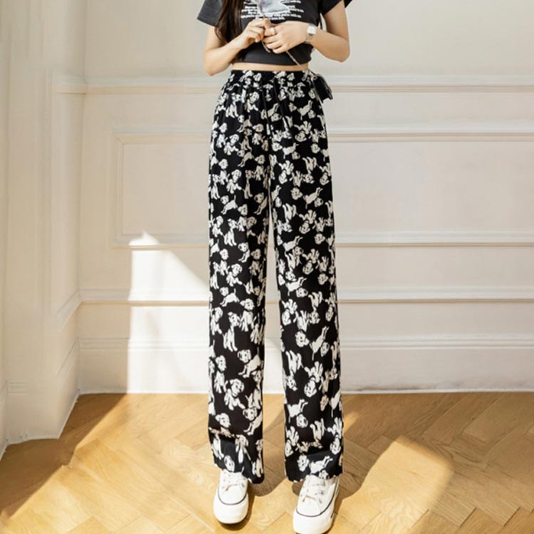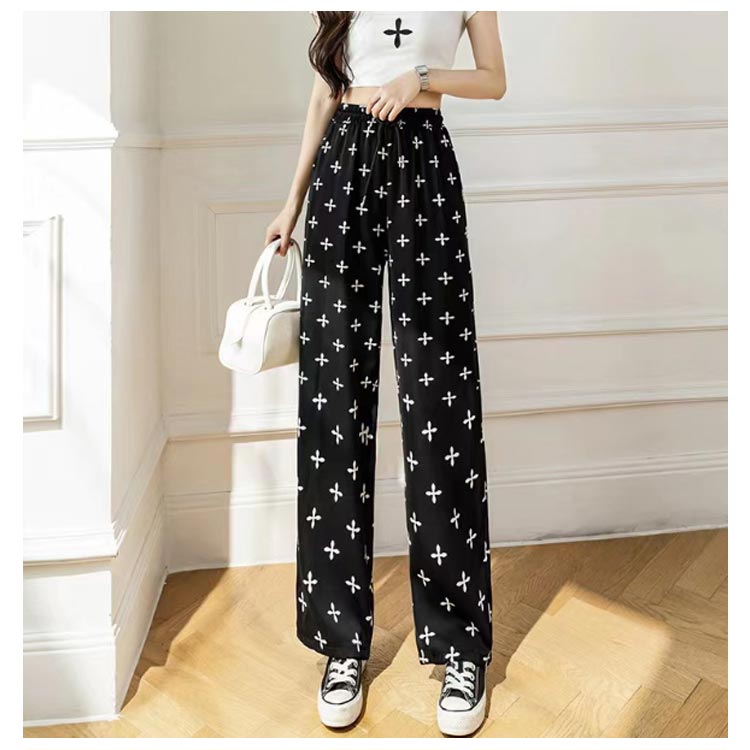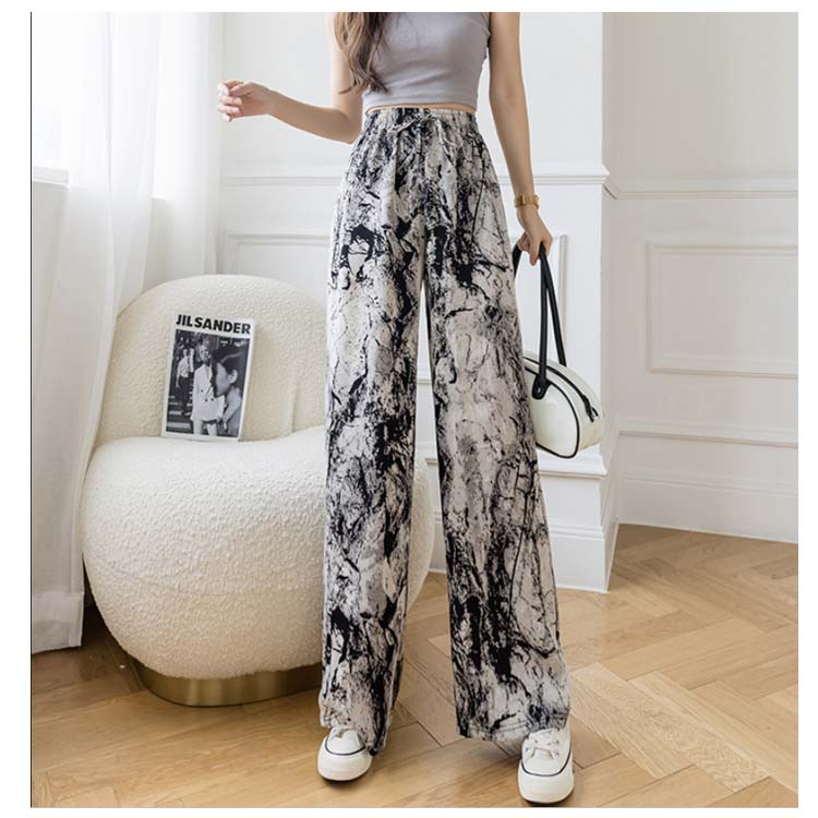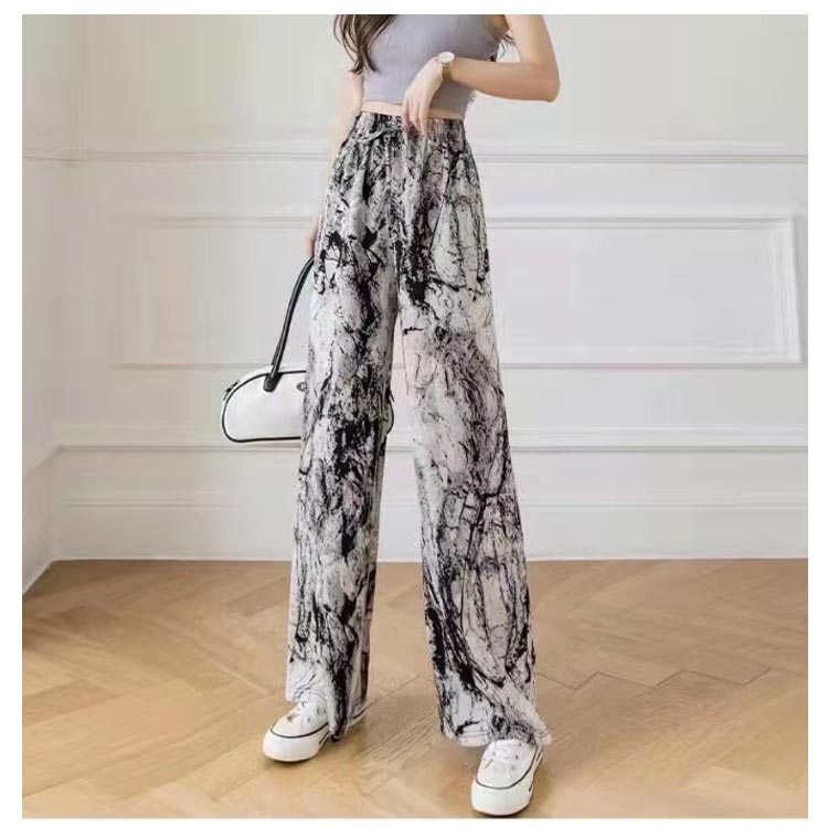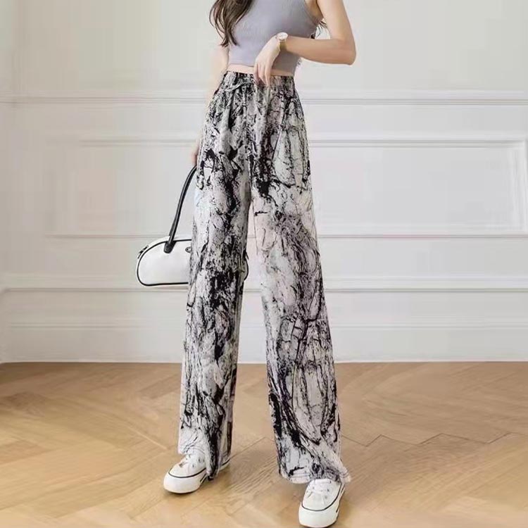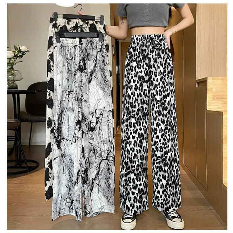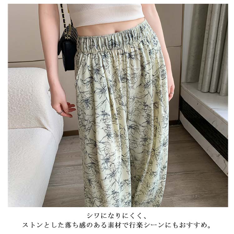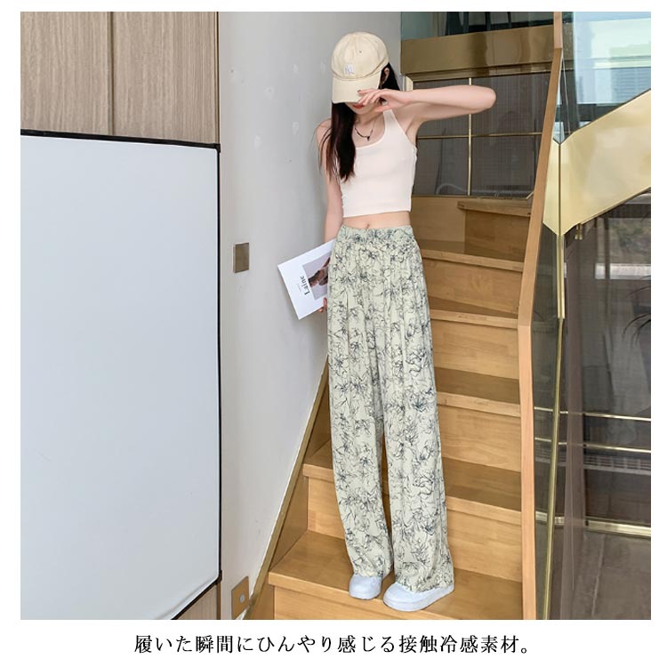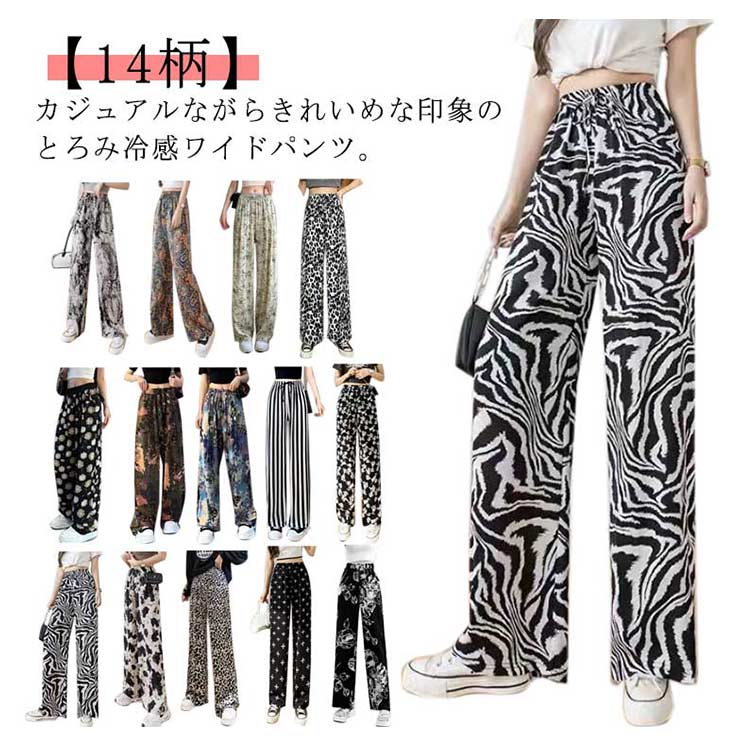 接触冷感 ワイドパンツ 総柄 レディース イージーパンツ ワイド 冷感 涼感 アイス シルク パンツ ロング 夏 ルームウェア 部屋着 落ち感 薄手 着瘦せ 体型カバー ハイウエスト ゴムウエスト ストレッチ リラックス カジュアル ヒョウ柄 ゼブラ柄 花柄 【送無】
