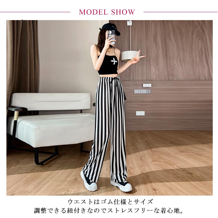 カジュアルながらきれいめな印象のとろみ冷感ワイドパンツ。【14柄】ウエストはゴム仕様とサイズ調整できる紐付きなのでストレスフリーな着心地。落ち感のある素材がレッグラインを美しく見せてくれます。履いた瞬間にひんやり感じる接触冷感素材。シワになりにくく、ストンとした落ち感のある素材で行楽シーンにもおすすめ。