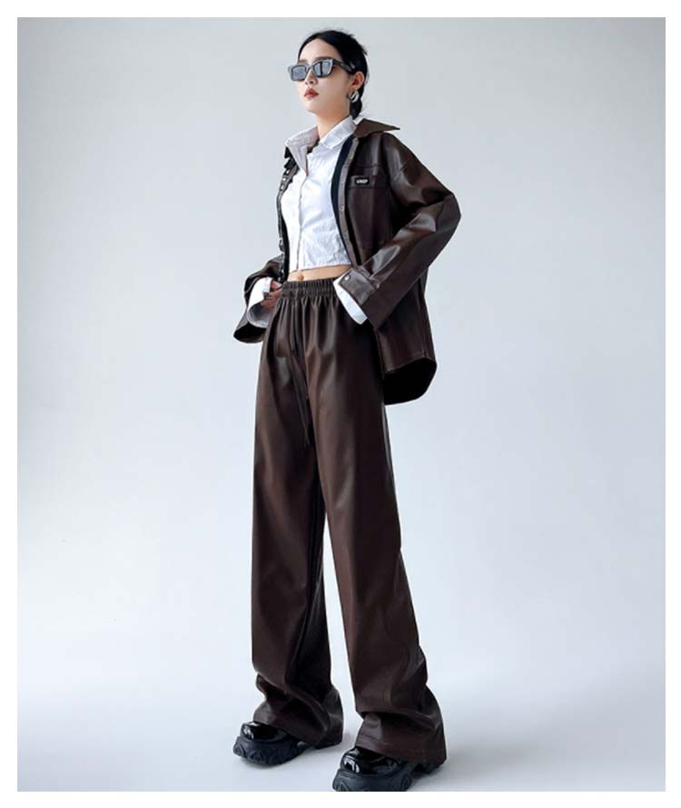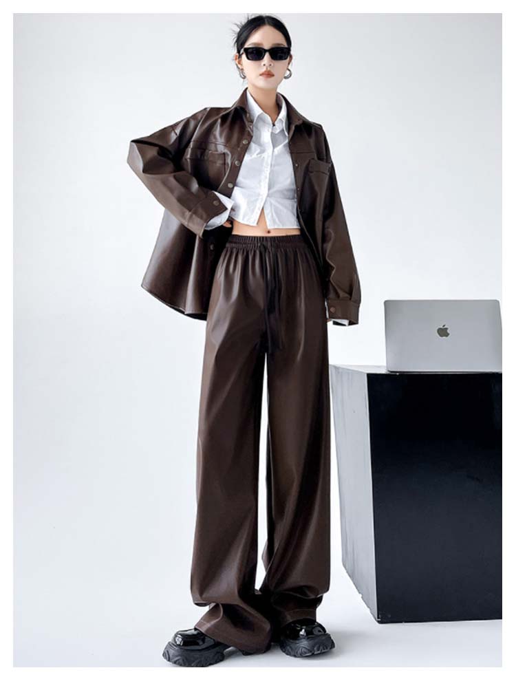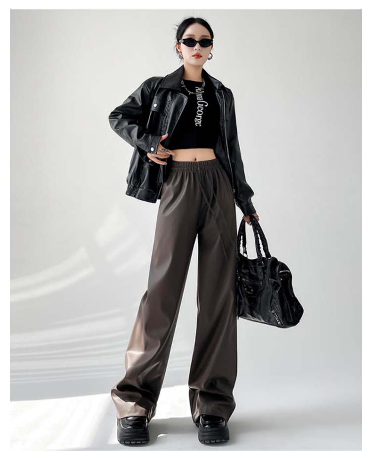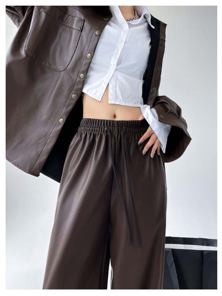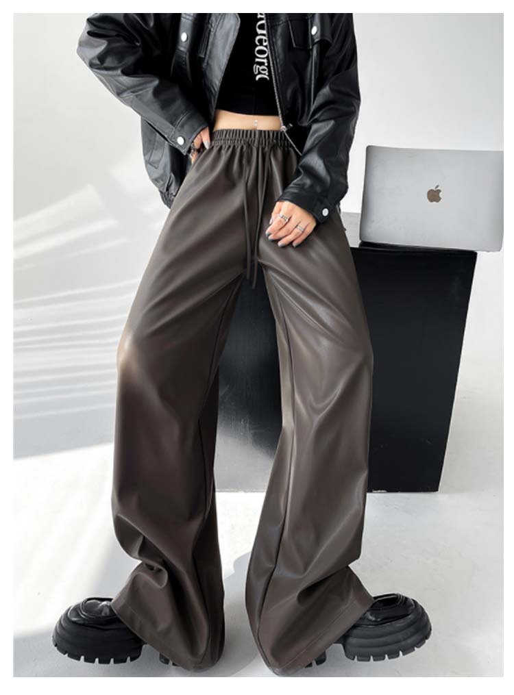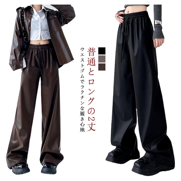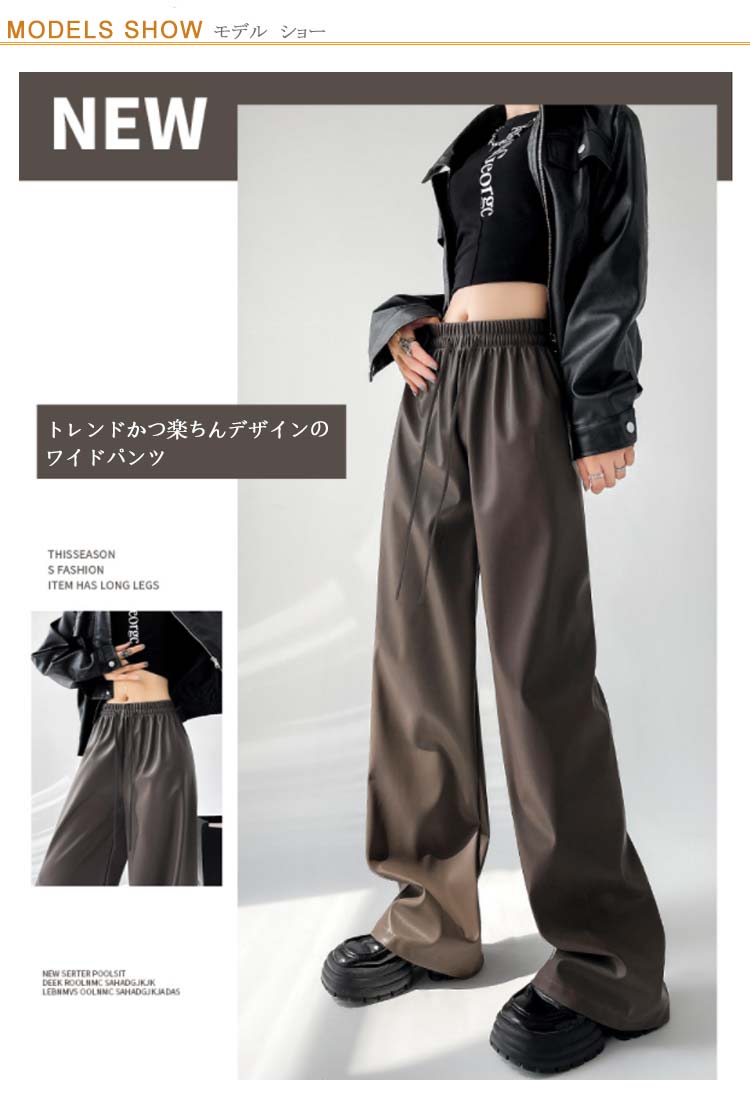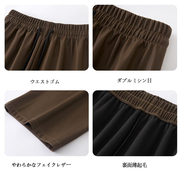 ガウチョパンツ 秋 冬 春 春秋 秋冬 ダンス衣装 パンツ レディース ウエストゴム フェイクレザー ワイドパンツ 黒 ブラウン フェイクレザー イベント パンツ レザーパンツ レザー ボトムス ズボン 冬服 春服 秋服