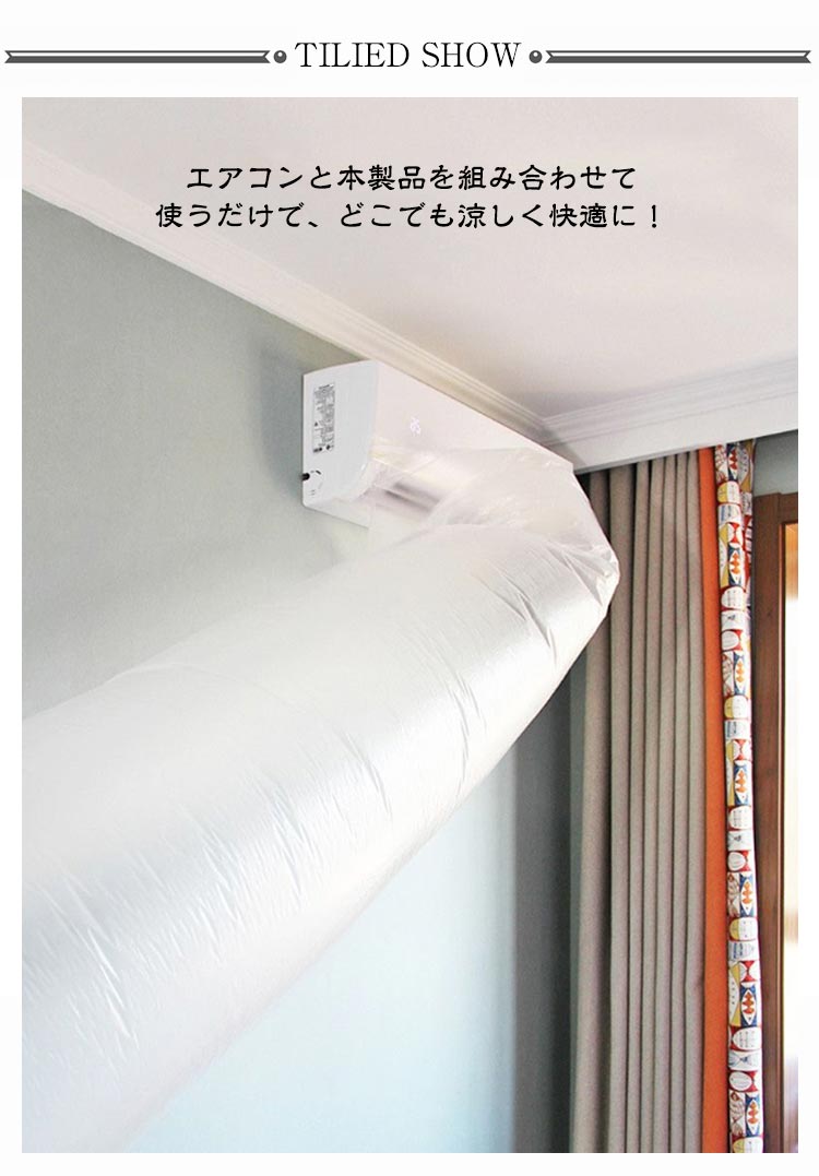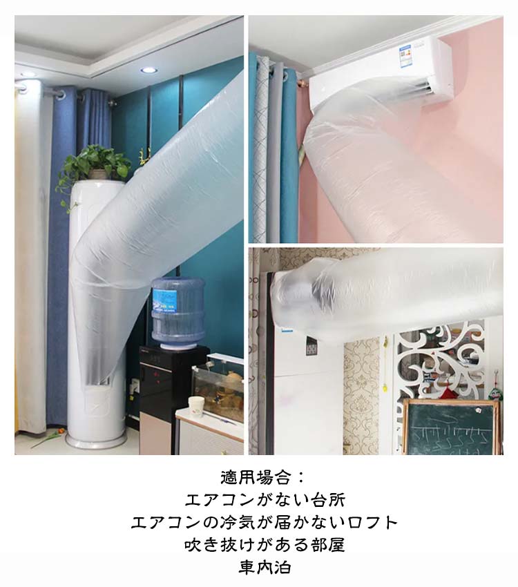 | 【エアコンの冷風を隣の部屋まで届く】【5.5m 8.5m 10.5m 12.5m 16.5m】 エアコンと本製品を組み合わせて使うだけで、どこでも涼しく快適に! 厚いPE素材を採用され、変形しにくく、繰り返しの曲げ伸ばしに耐え、長持ちしやすい。 十分に長くて、長さは必要に応じてカット可能。 使用しないときに収納しやすいので、スペースを節約できます。 適用場合: エアコンがない台所 エアコンの冷気が届かないロフト 吹き抜けがある部屋 車内泊 | |
