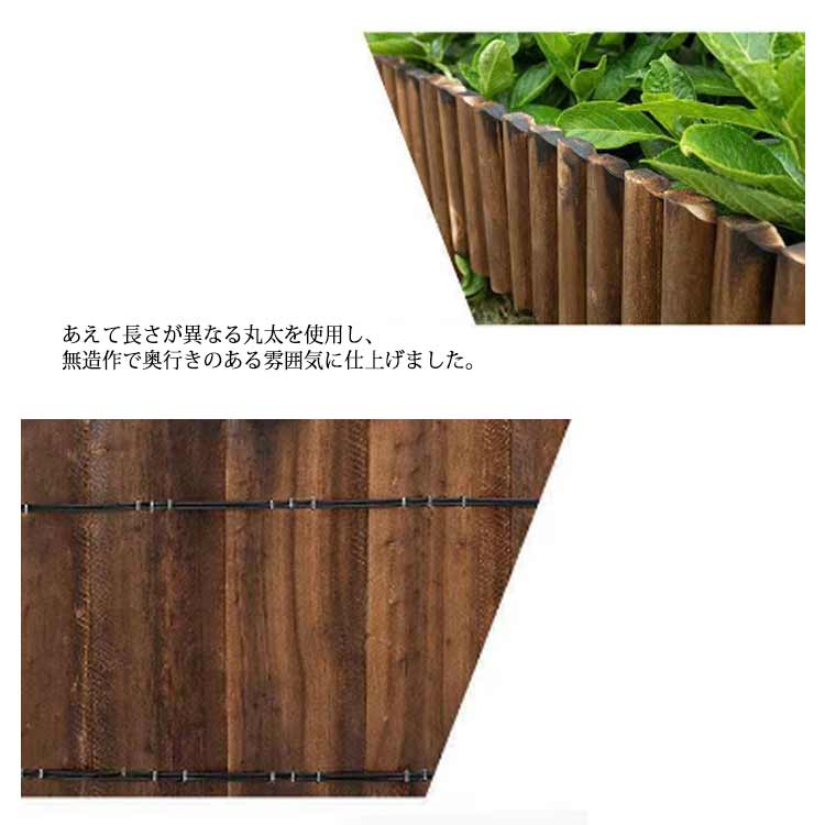 素敵なムードを演出する木製ツリースカート/ガーデンフェンスが登場!本物の丸太で存在感抜群 本物の丸太を使用しているので、足元からクリスマスツリーが綺麗に見えます。あえて長さが異なる丸太を使用し、無造作で奥行きのある雰囲気に仕上げました。ウッドフェンスひとつで、簡単に北欧風ツリーの雰囲気が味わえます。クリスマスツリーの足元にクリスマスツリーの寂しい足元をおしゃれに隠すことが出来ます。
