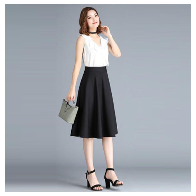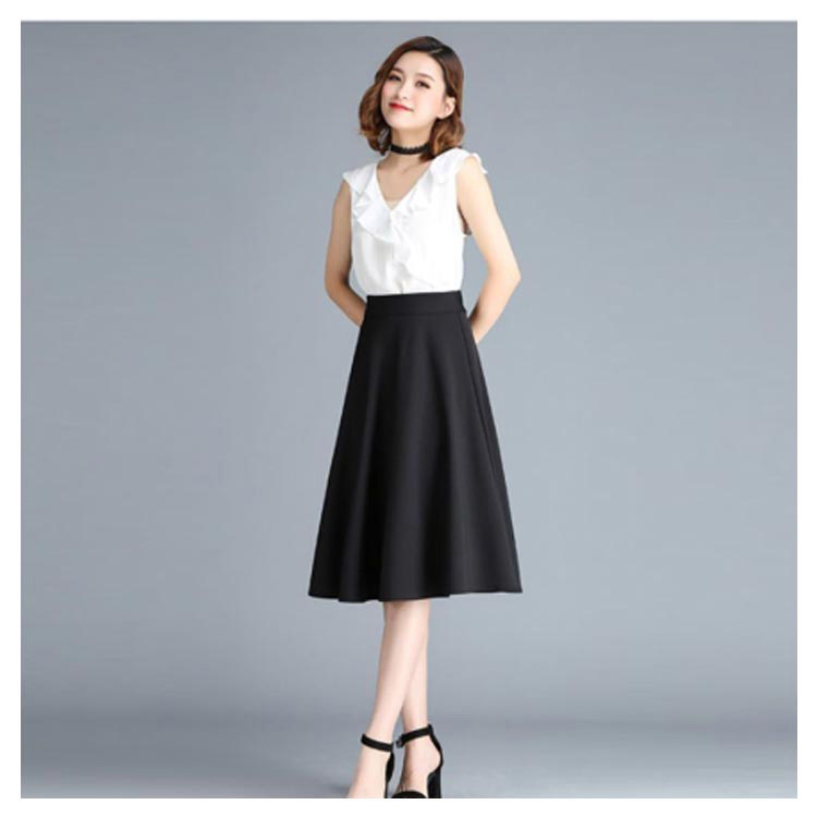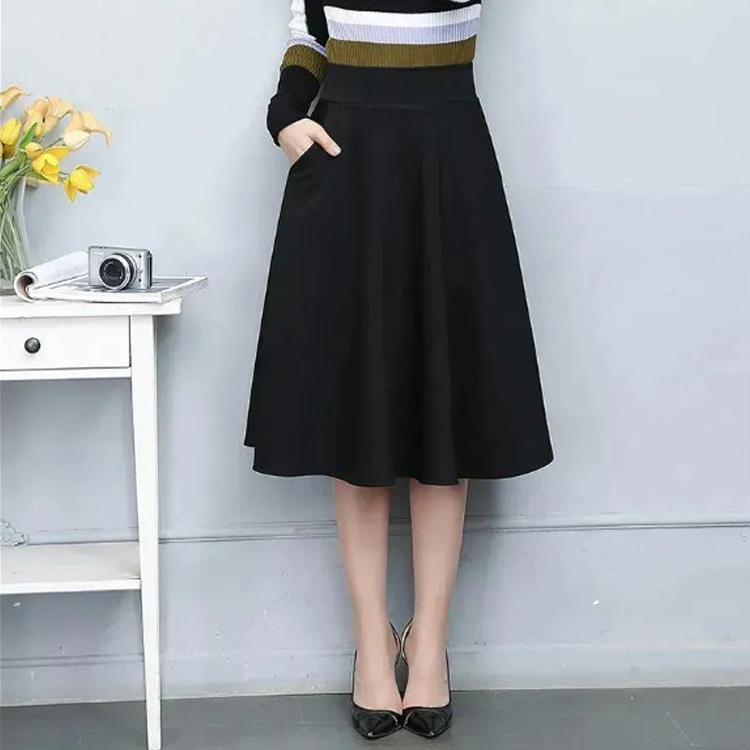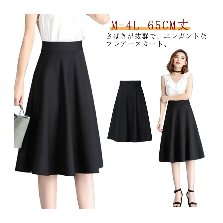フレアースカート レディース 事務 制服 スカート 65CM丈 ひざ丈スカート ポケット付き 膝丈 企業制服 仕事 仕事 オフィス ユニフォーム ブラック