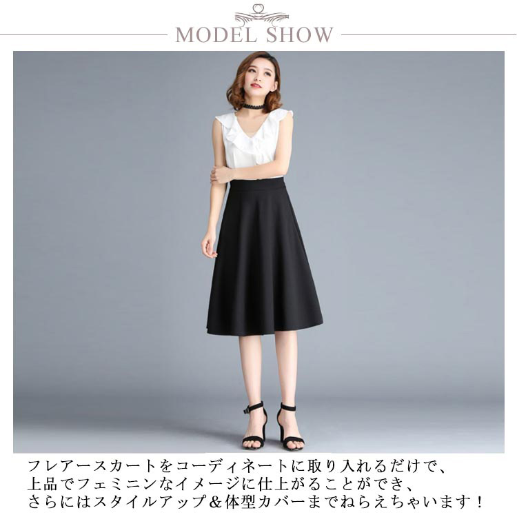 | さばきが抜群で、エレガントなフレアースカート。 フレアースカートをコーディネートに取り入れるだけで、上品でフェミニンなイメージに仕上がることができ、さらにはスタイルアップ&体型カバーまでねらえちゃいます! | |