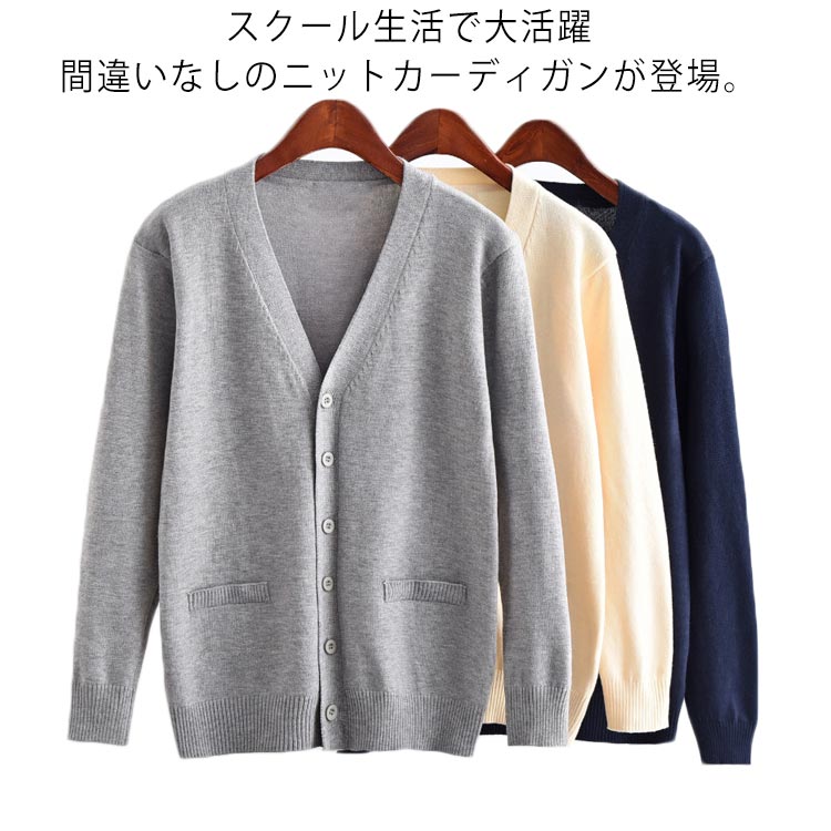 スクール カーディガン 制服 ニットカーディガン Vネック スクールカーディガン 学生 女子 男子 高校生 学生服 カーディガン 羽織り 春 秋 冬 高校生 中学生 通学 学校 薄手 カーディガン 防寒 紺 ネイビー グレー ブラック 黒 【送料無料】