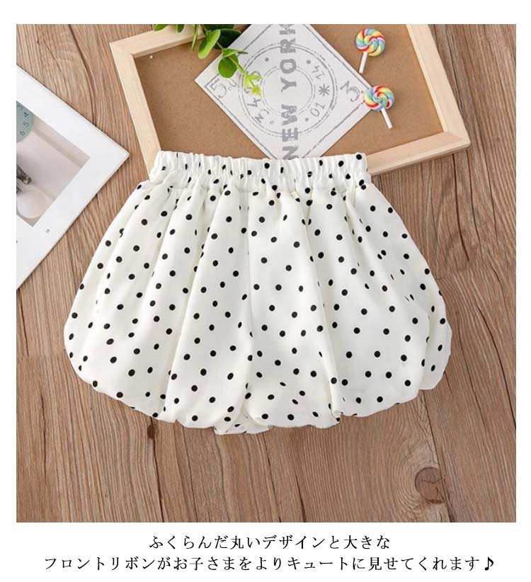 | 80cm 90cm 100cm 110cm 120cm 130cm ベビーからキッズまで使える、かぼちゃパンツ! ウエストと足回りがゴム仕様で履かせやすく、動きやすい! ふくらんだ丸いデザインと大きなフロントリボンがお子さまをよりキュートに見せてくれます? 姉妹やお友だちとお揃いにしても◎ | |