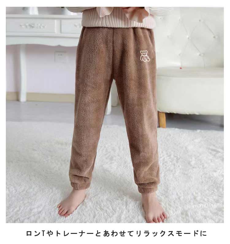 ルームパンツ キッズ 男の子 女の子 ボア フリース パンツ 子供 あったかパンツ もこもこ 防寒 暖かい ルームウェア ふわふわ もこもこ ジュニア 部屋着 パジャマ ナイトウェア シンプル 冬 かわいい 子供服 こども服 子ども用 長ズボン 100 110 120 130 140 150cm 送料無料