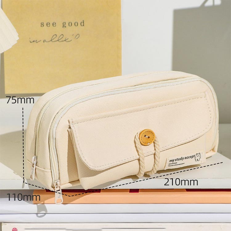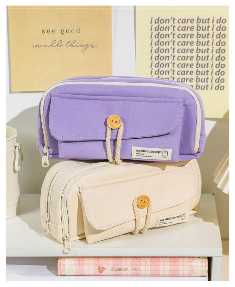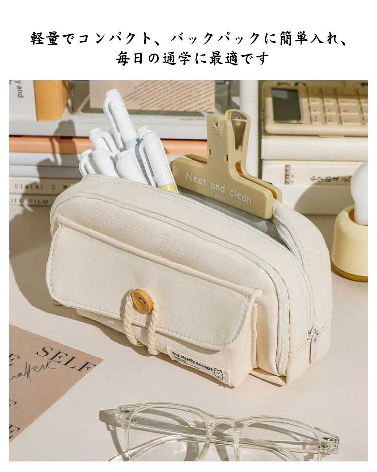 大容量 筆箱 ペンケース 80本ペン入れ可 ふで箱 可愛い おしゃれ 韓国風 コットンロープボタン 高校生 中学生 多機能 ペンホルダー シンプル ふでばこ 小学生 男の子 女の子 収納袋 文房具 化粧品入れ 軽量 入学祝い プレゼント