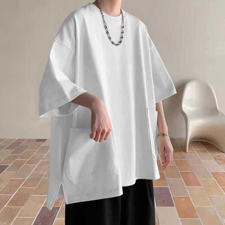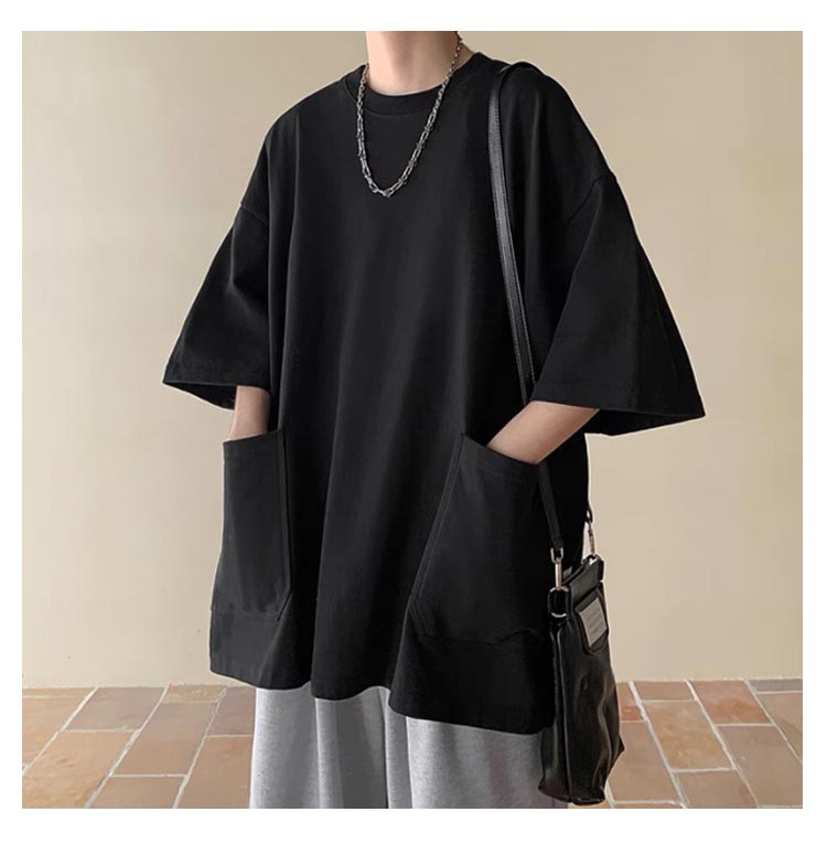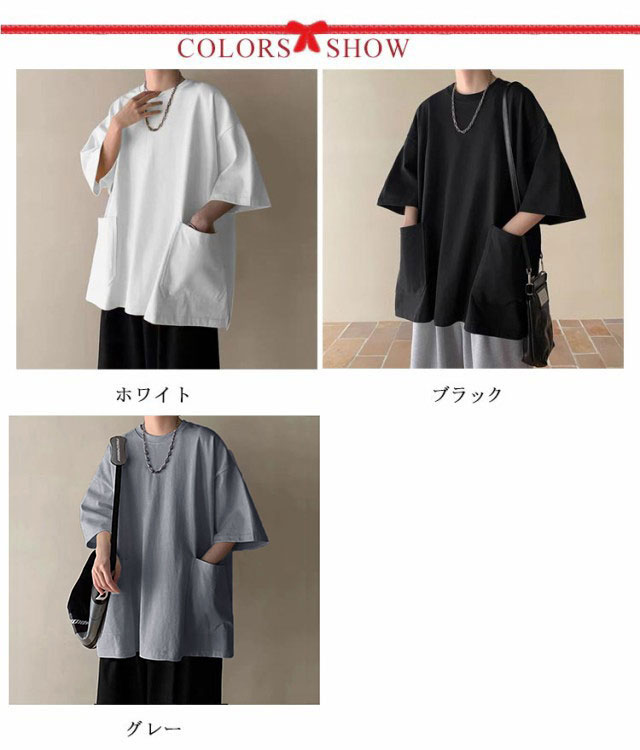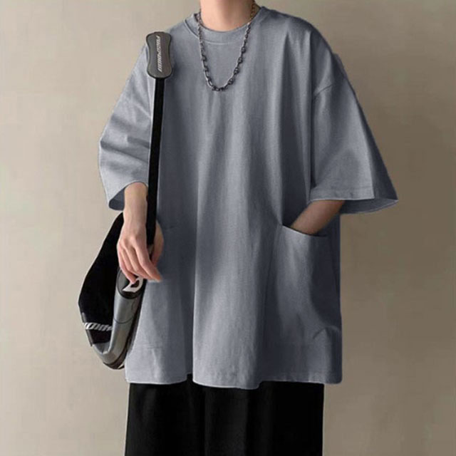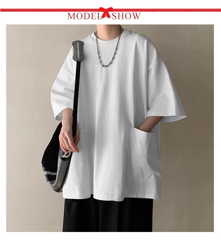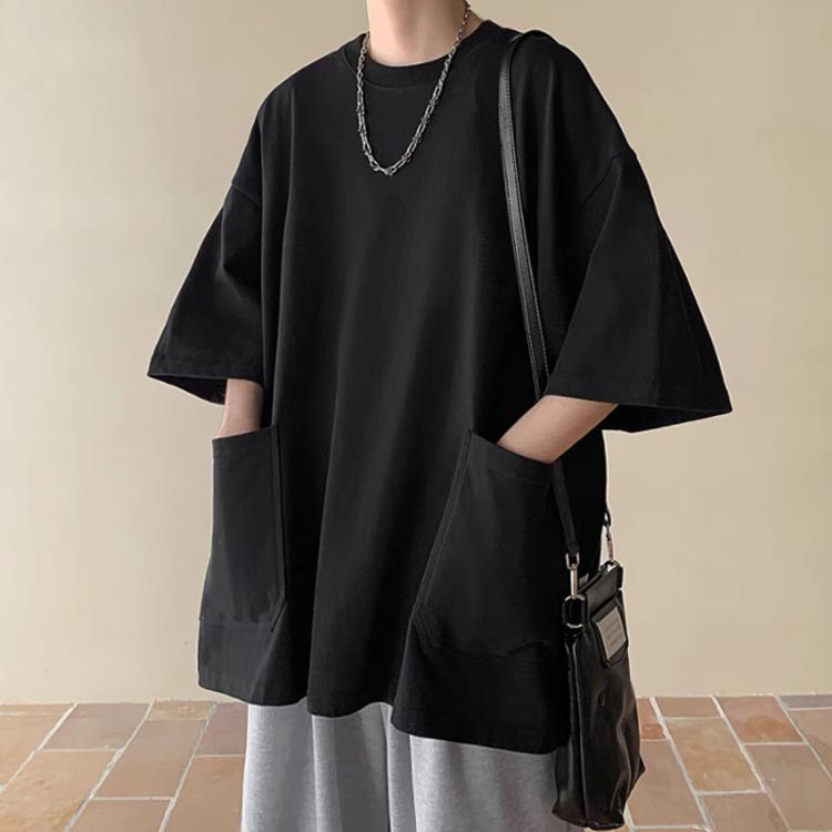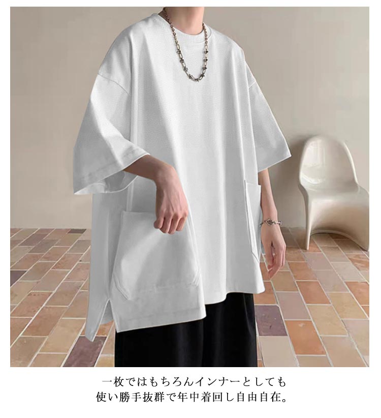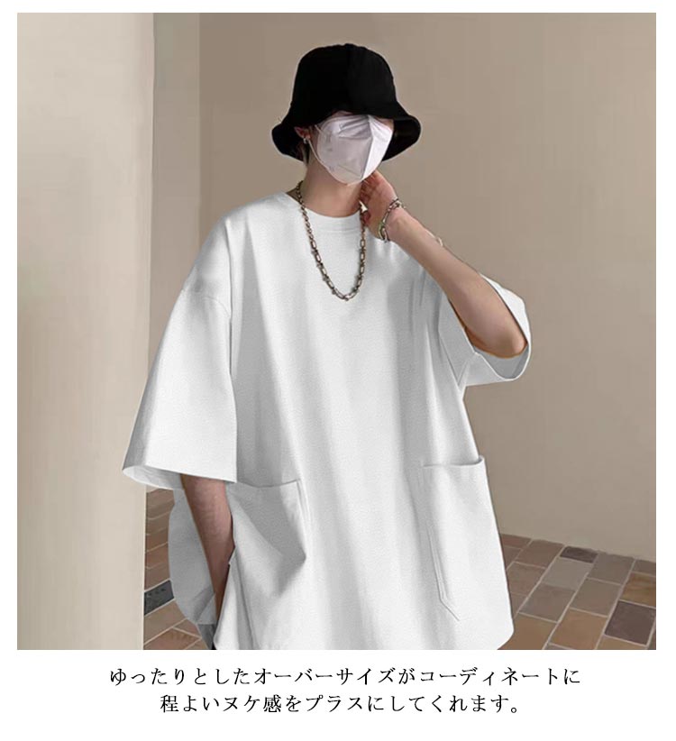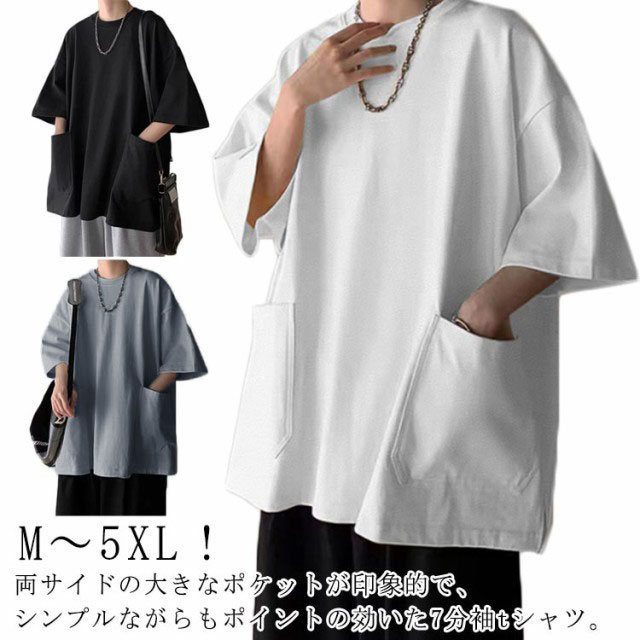 Tシャツ メンズ 半袖 七分袖 夏 ビッグtシャツ オーバーサイズ ビッグシルエット tシャツ 大きなポケット クルーネック トップス 大きいサイズ カットソー インナー シンプル 夏 夏服 春 春服 ストリート 送料無料