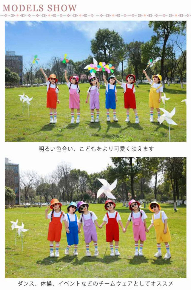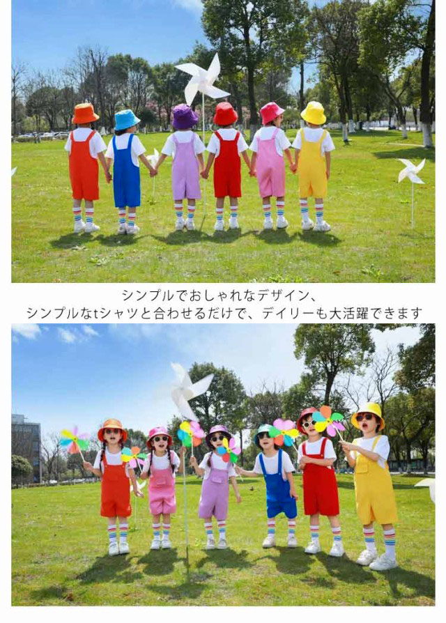 カラーパンツ サロペットパンツ キッズ ダンス衣装 女の子 男の子 カラフル サロペット オーバーオール 韓国子供服 幼稚園 保育園 発表会 卒園式 演出服 応援団 ショートパンツ 短パン 夏服 春夏 韓国子供服 無地 卒業写真撮影 記念写真