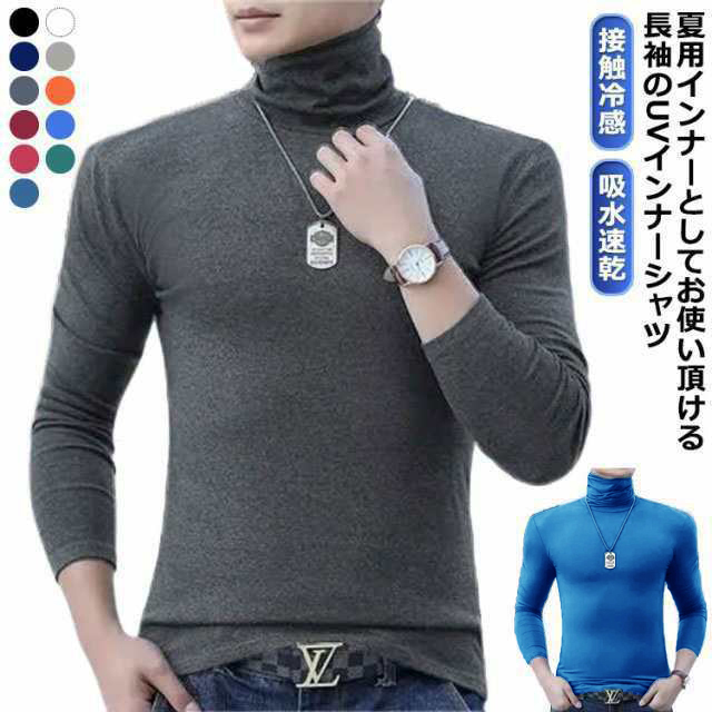 メンズ スポーツシャツ 長袖 【接触冷感】ゴルフ インナー アンダーウェア ハイネック 薄手 夏 ゴルフ ゴルフウェア UVカット 通気 冷感 ウェア ゴルフウェア シャツ 夏 スポーツシャツ ゴルフウェア 吸汗 速乾 スポーツウェア 日焼け対策