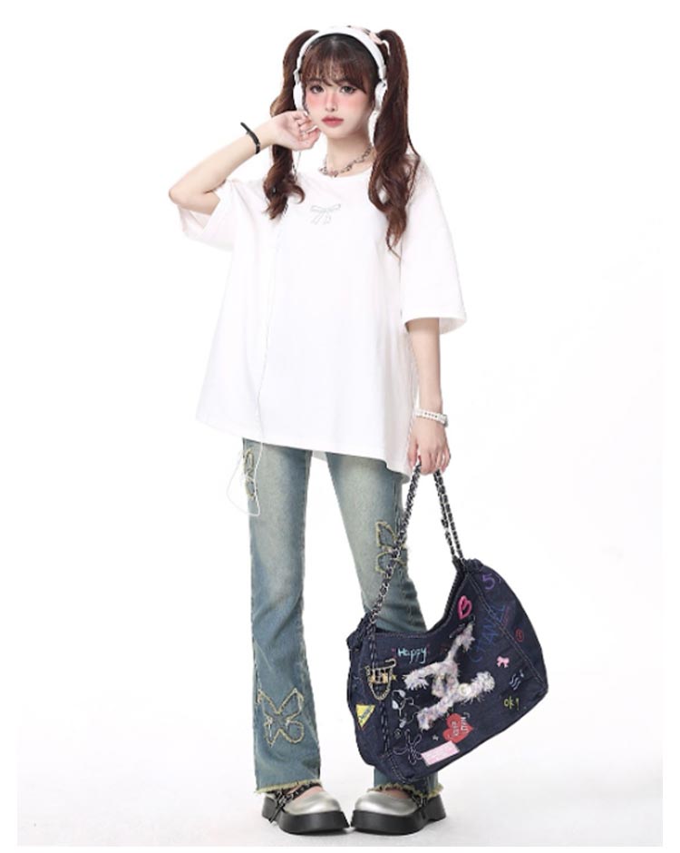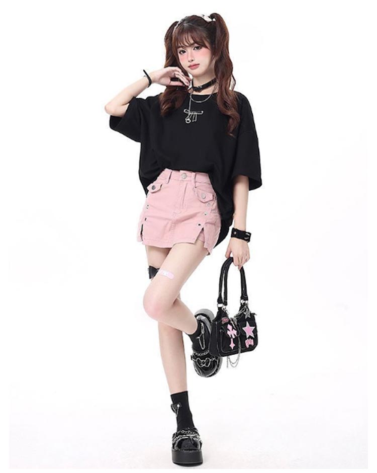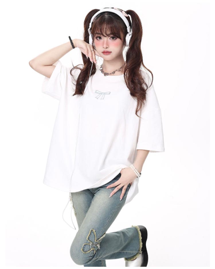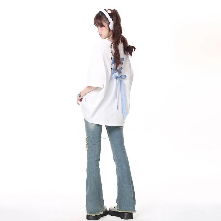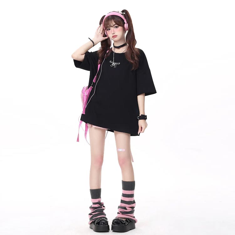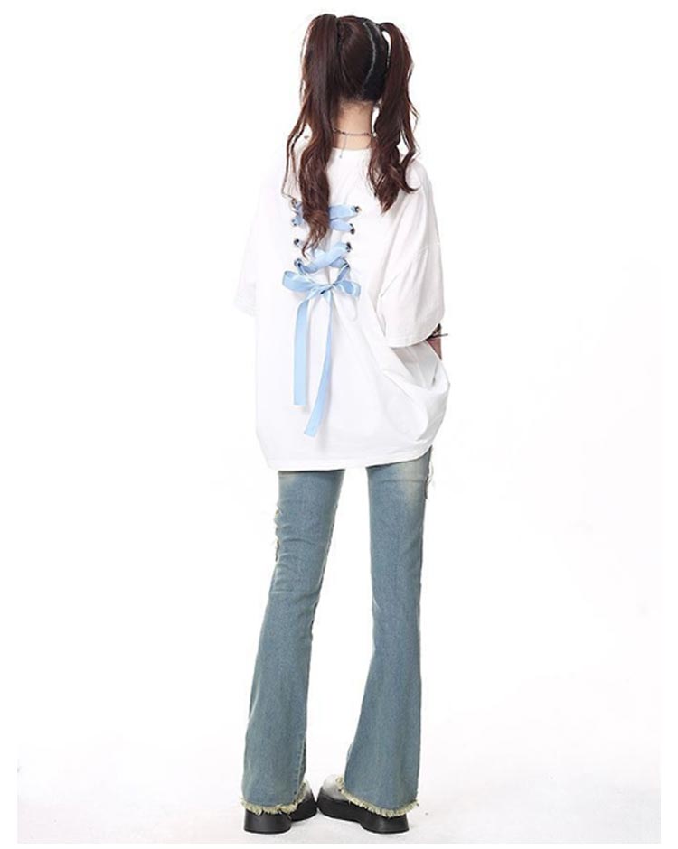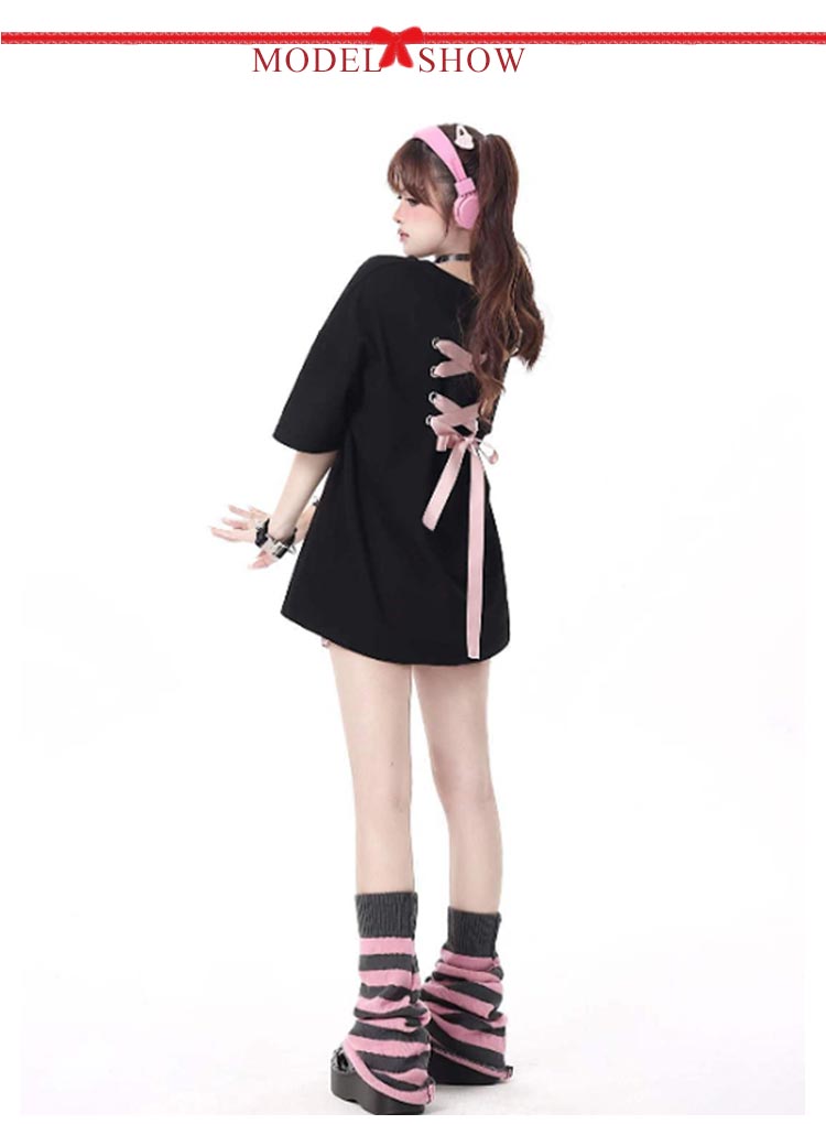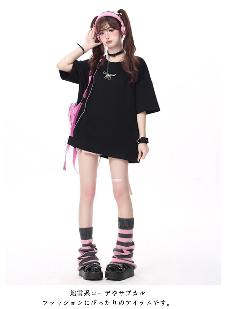 | バックのリボンが甘さをプラスする地雷系Tシャツ。 吸水性や通気性がいい綿素材で、肌ざわりの良い快適な着心地! 地雷系コーデやサブカルファッションにぴったりのアイテムです。 | |