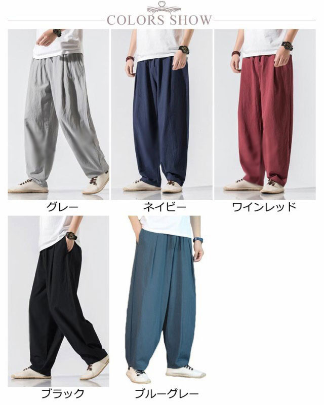 リネン パンツ メンズ 夏 ワイドパンツ 袴パンツ バギーパンツ 送料無料 サルエルパンツ メンズ 夏服 ズボン ゆったり ビッグシルエット 春 夏 秋 麻 ズボン 父の日 ギフト 男性 ズボン ゆったり 薄手 ロング丈