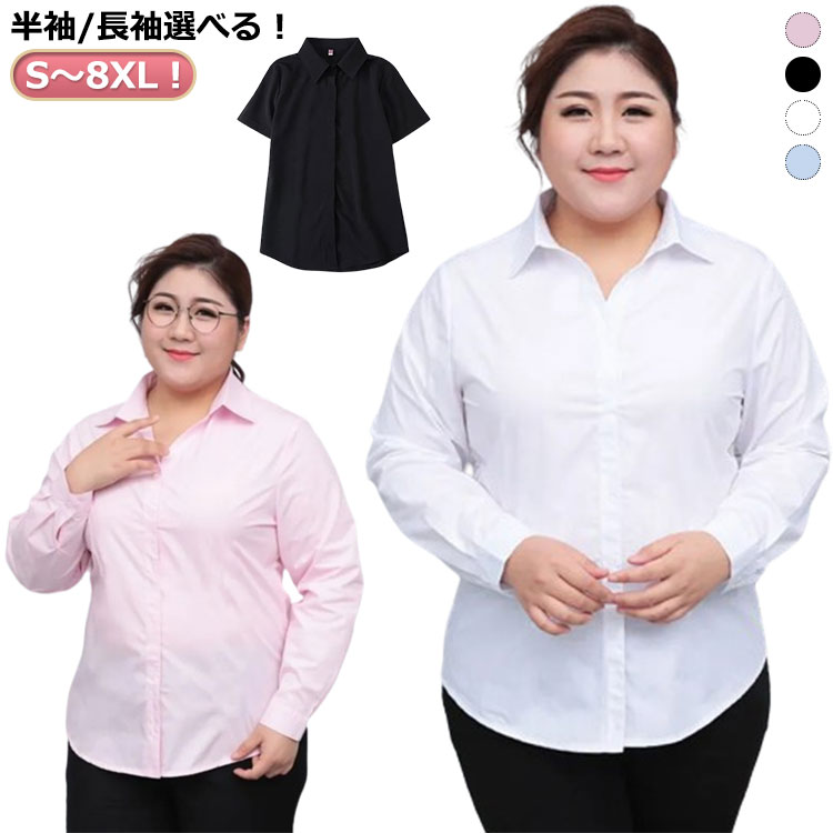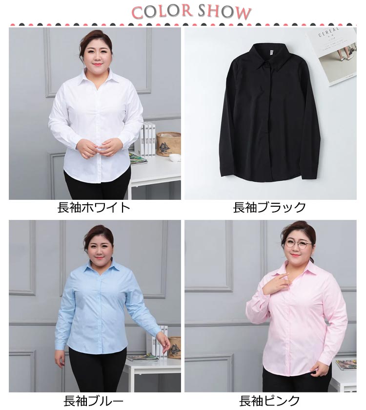シャツ 半袖 シャツ レディース 大きいサイズ 長袖 ビジネスシャツ スーツ 白シャツ ブラウス 襟付き 会社 オフィス スーツ ゆったり リクルート 就活 OL フォーマル 通勤 事務服 無地 レディースブラウス 春 秋 ブラック ホワイト ブルー Yシャツ