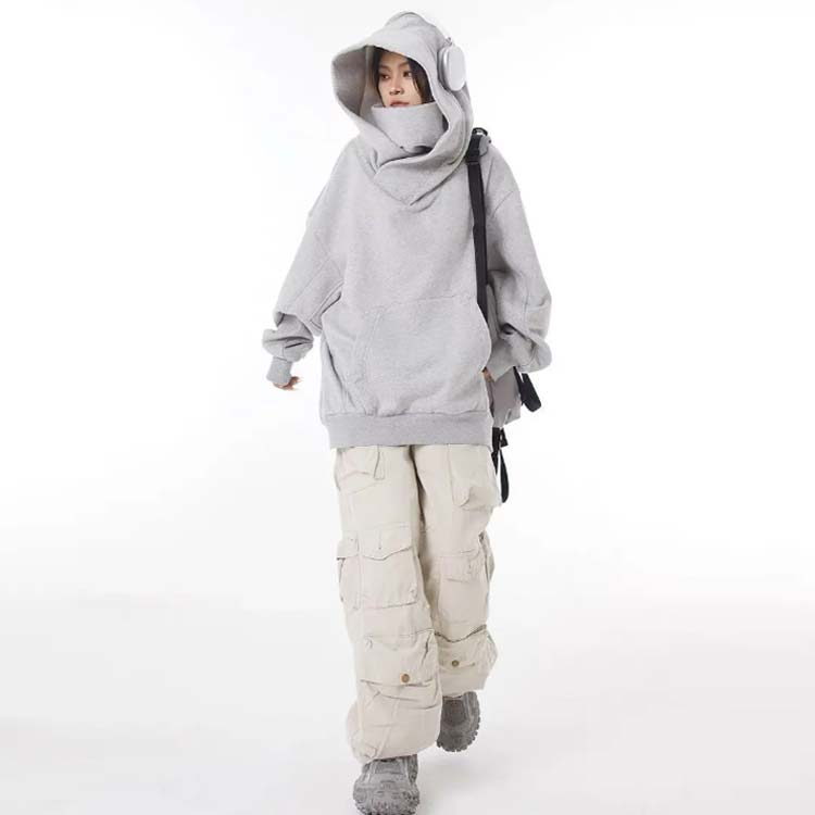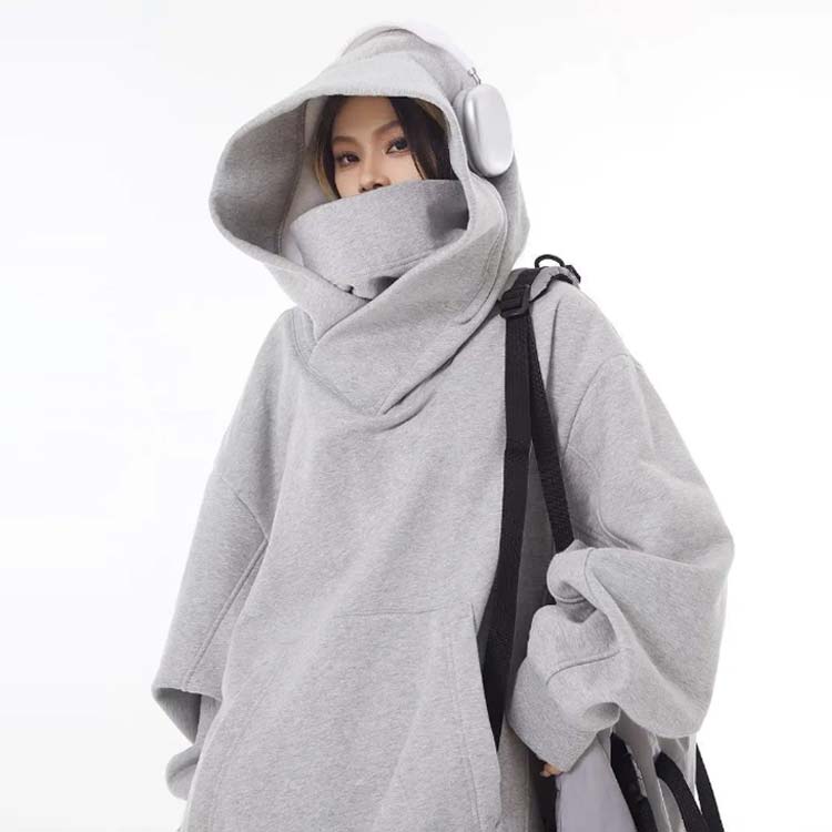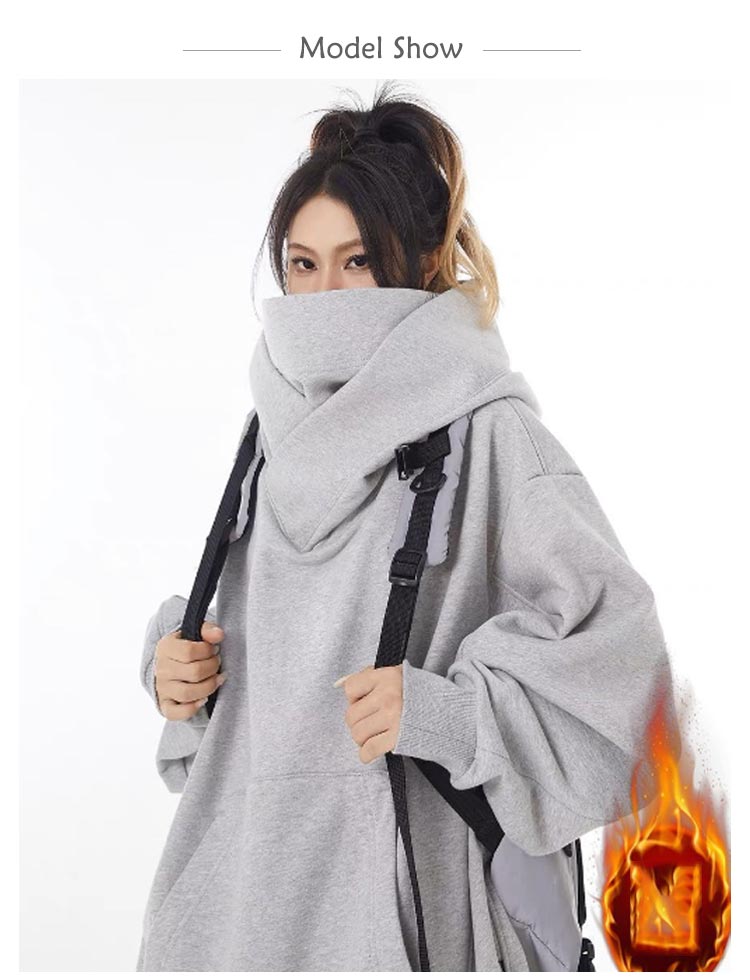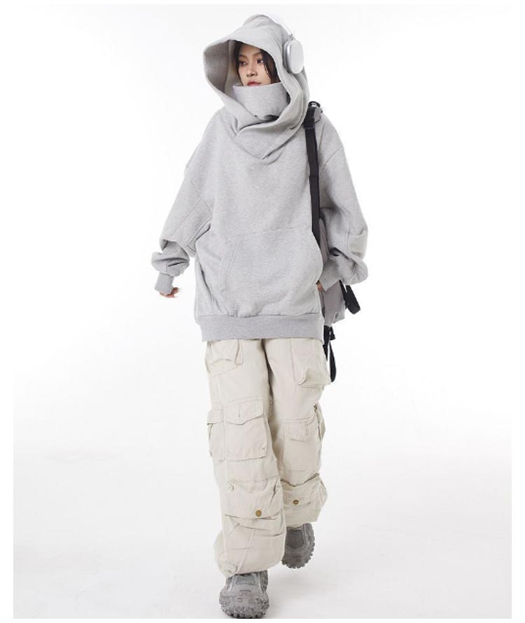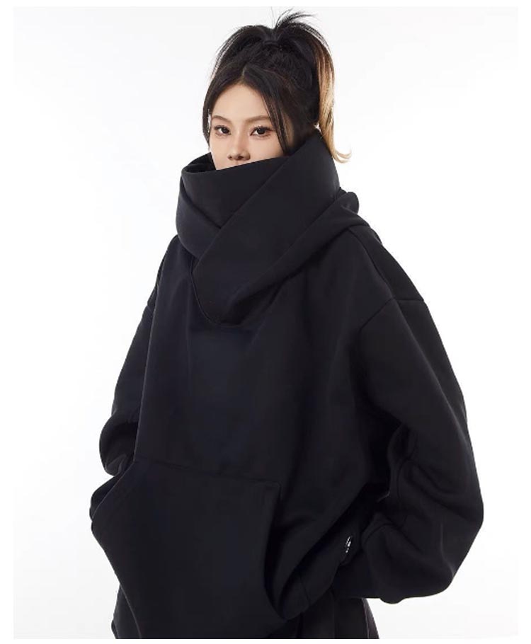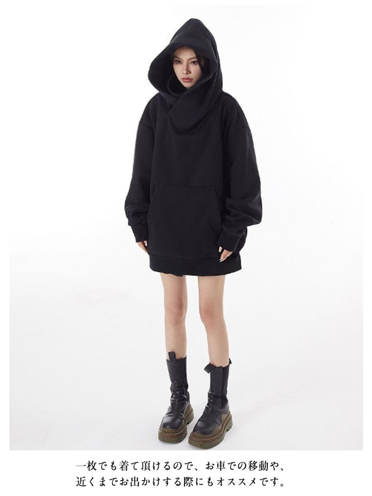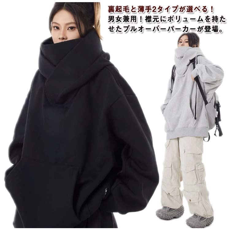 裏起毛 薄手 ボリュームネックパーカー カップル メンズ レディース 男女兼用 パーカー 秋服 長袖 プルオーバーパーカー フード付きパーカー スウェット ハイネックパーカー おしゃれ 大きいサイズ 無地 ゆったり ストリート系 ヒップホップ お兄系 個性的 モード系 原宿風