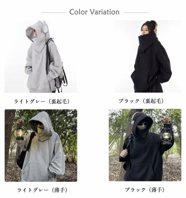 | 色 | ライトグレー(裏起毛) ブラック(裏起毛) ライトグレー(薄手) ブラック(薄手) |