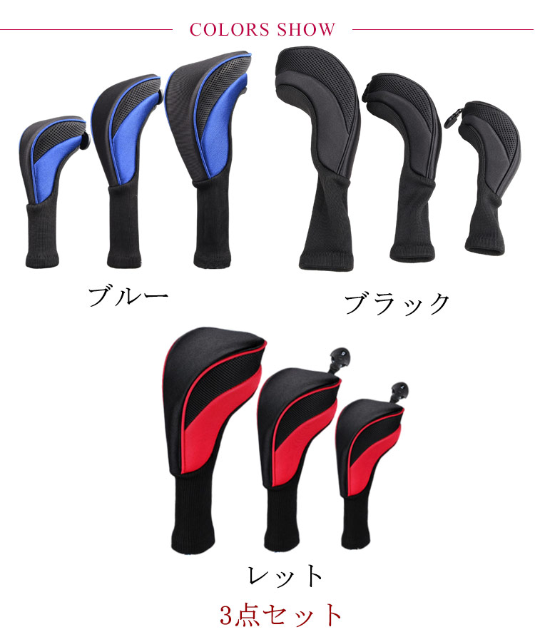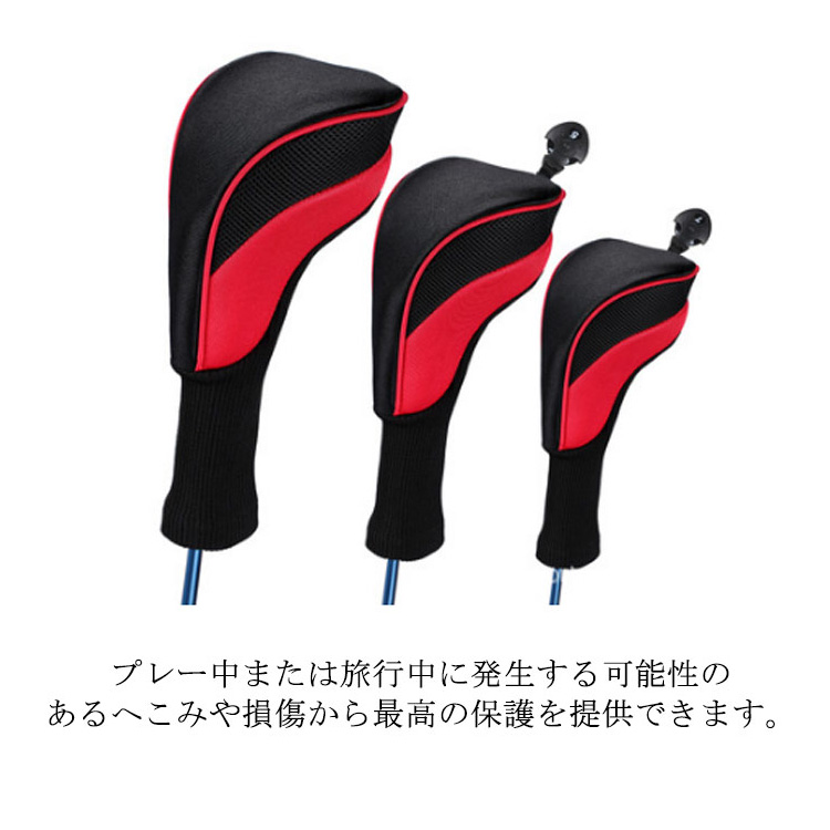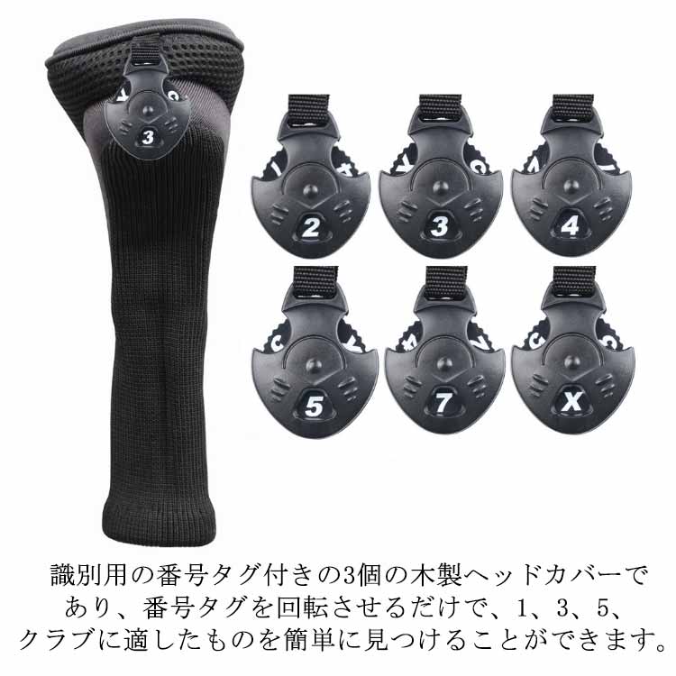 3個セット ゴルフヘッドカバー ゴルフ ウッドドライバー 番号タグ付き ダグ変換可能 変換可能 軽量 頑丈 収納 軽い 着装やすい 長持ち 耐摩耗 クラブヘッドカバー ウッドカバー ロングネック