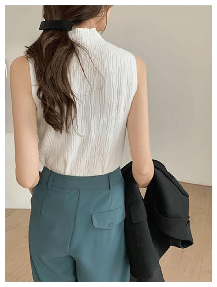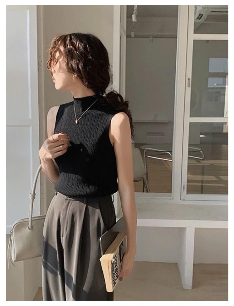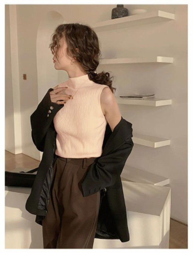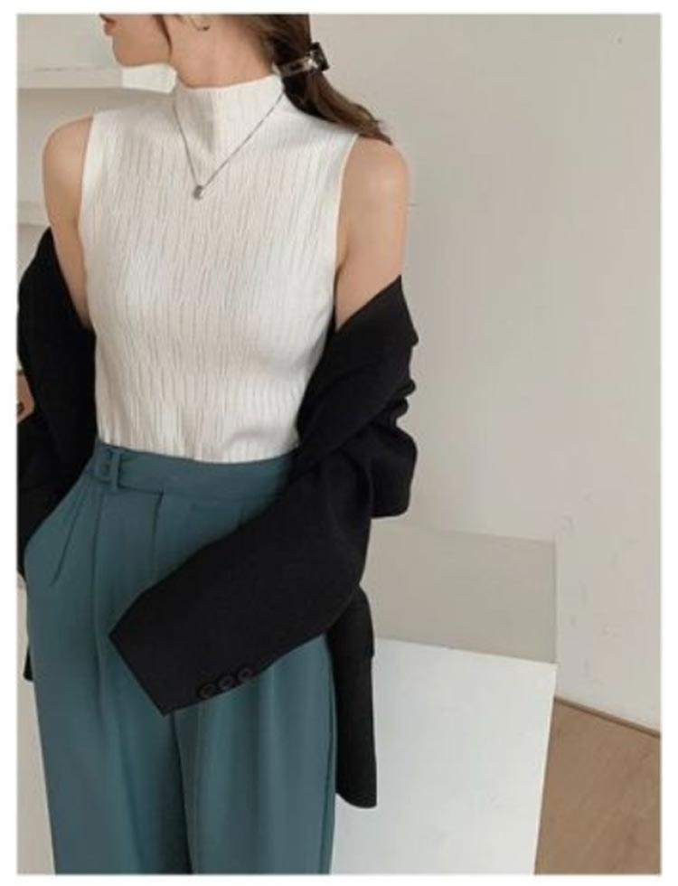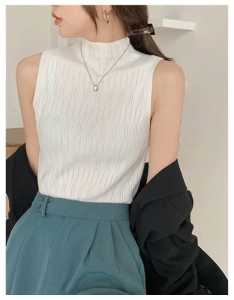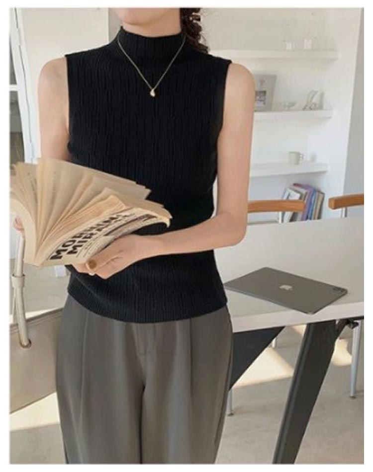ふんわり柔らかな肌触りと抜群の伸縮性で楽な着心地を叶えるカットソー。ノースリーブのデザインはジャケッ トなどを羽織った際に袖がもたつかず、レイヤードスタイルに最適。コンパクトシルエットでありながら、プリーツの凹凸によってインナーの線や背中のハミ肉が映りにくいところが嬉しい♪控えめなネック高さでタートルネックの窮屈感が苦手な方にもオススメです。メインで着たり、レイヤードしたりとオールシーズン着用が可能です。