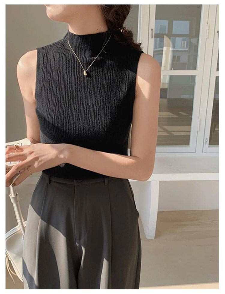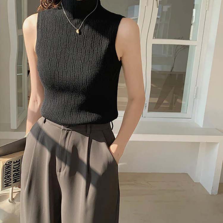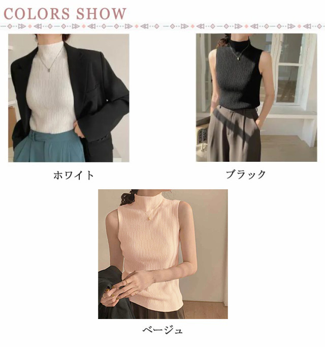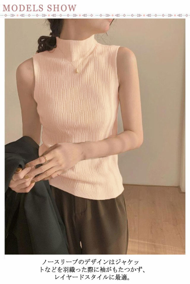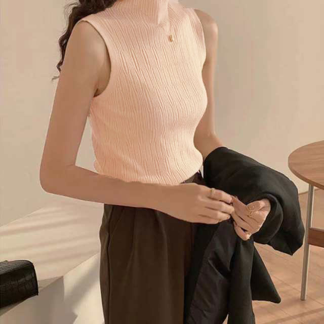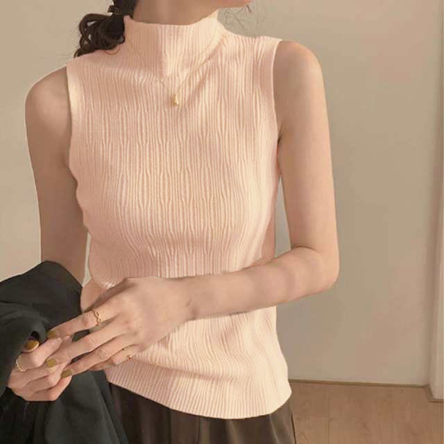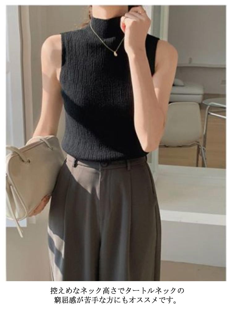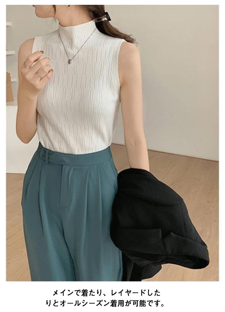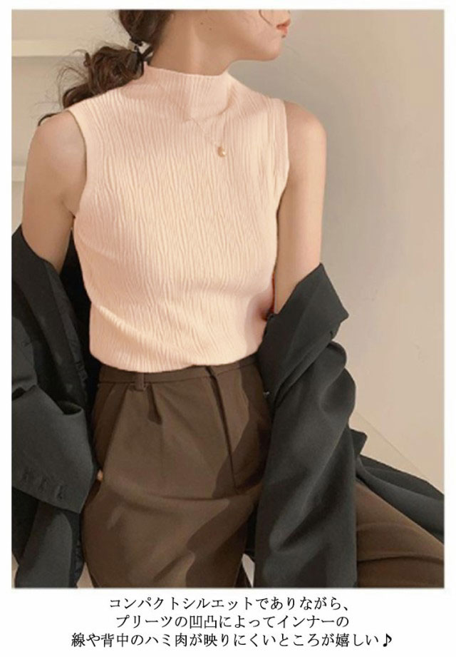 ハイネックノースリーブ トップス ニット レディース タートルネック カットソー インナー タンクトップ 無地 フィット 春 秋 冬 ボトルネック プリーツ 通勤 レイヤード 重ね着 きれいめ シンプル 白 黒 大人 上品 カジュアル 送料無料