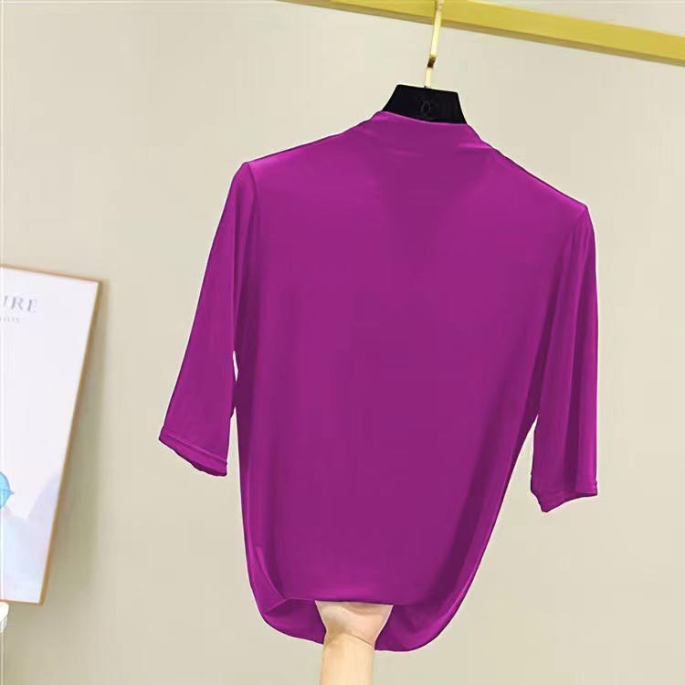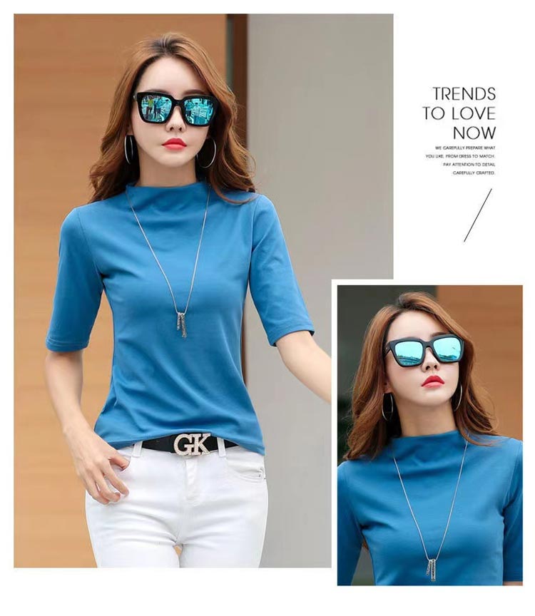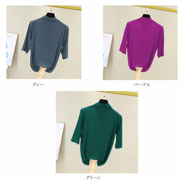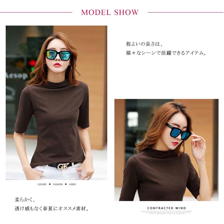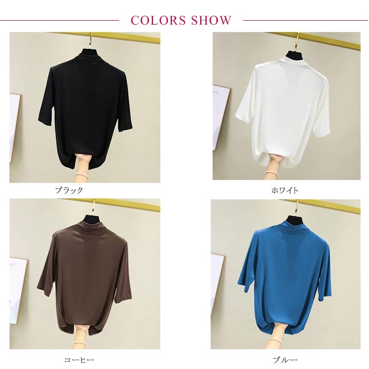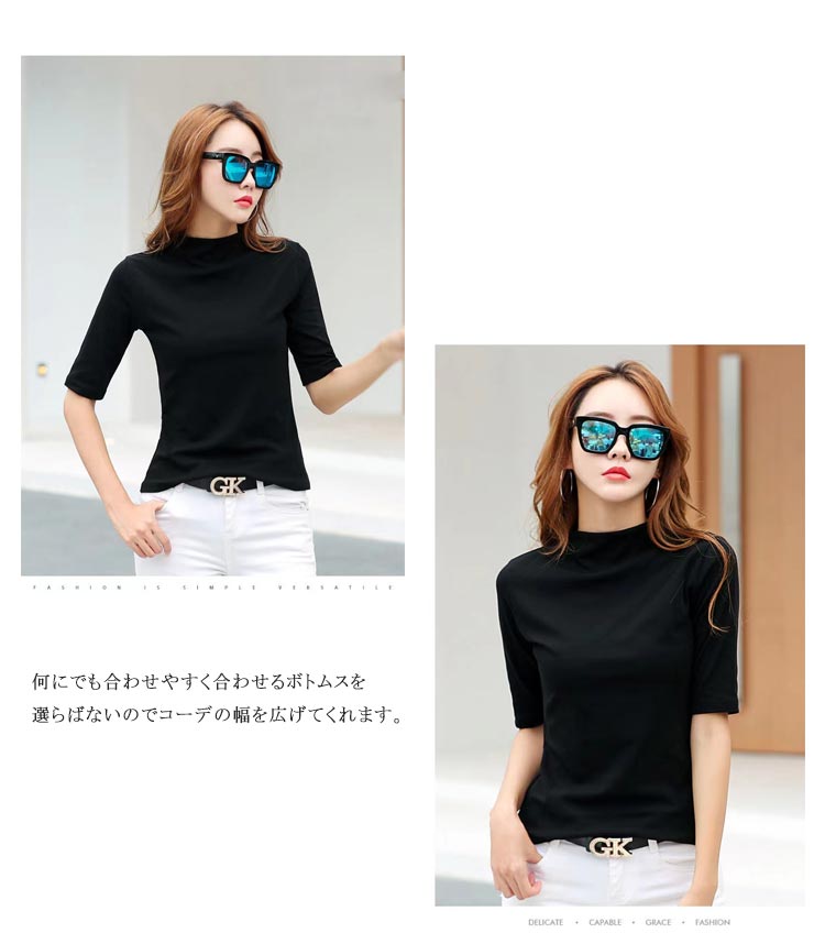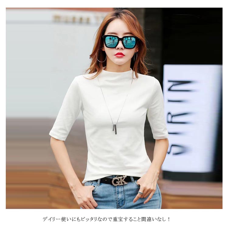 レディース 半袖tシャツ 半袖 五分袖 tシャツ プチハイネック 春秋 カットソー ハイネック タートルネック 夏 UVカット 日焼け対策 無地 シンプル 薄手 スリム 韓国 ファッション 20代 30代 40代 50代