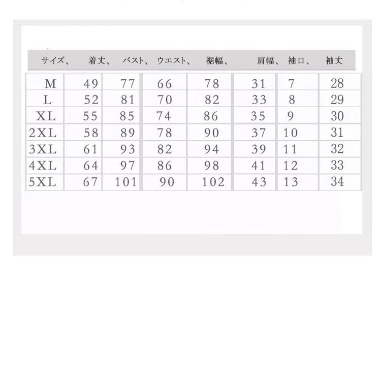 | サイズ | M L XL 2XL 3XL 4XL 5XL |