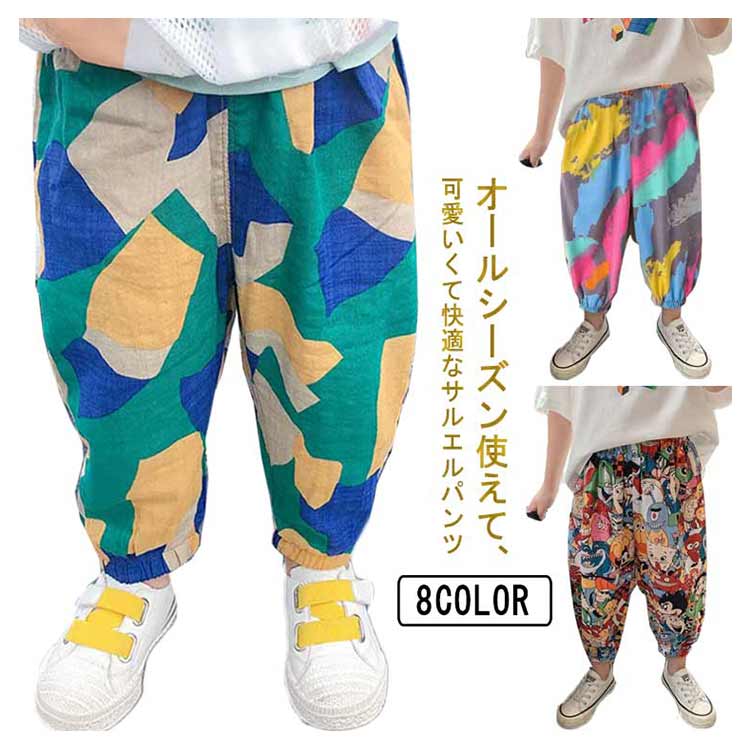 長ズボン 子供パンツ サルエルパンツ 大人 サルエル 花柄 冷感素材 蚊防ぐ 虫除け 薄手 キッズ ひんやり 接触冷感 九分丈 ルームパンツ パンツ ウエストゴム 通気性 柔らかい 防虫パンツ 無地 カジュアル ワイドパンツ ストレッチ 男の子 女の子 ボトムス 部屋着 送料無料