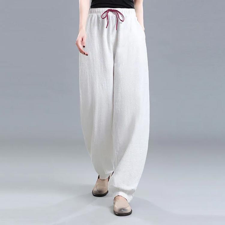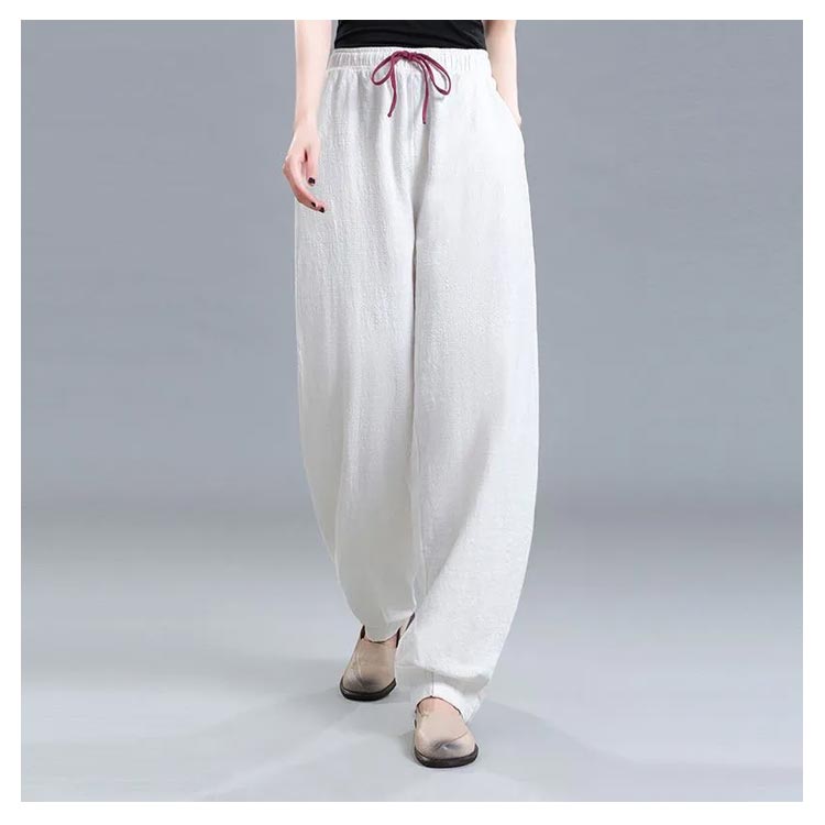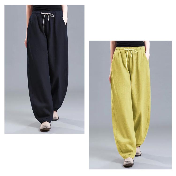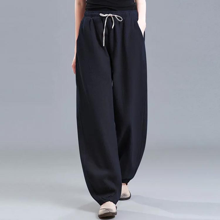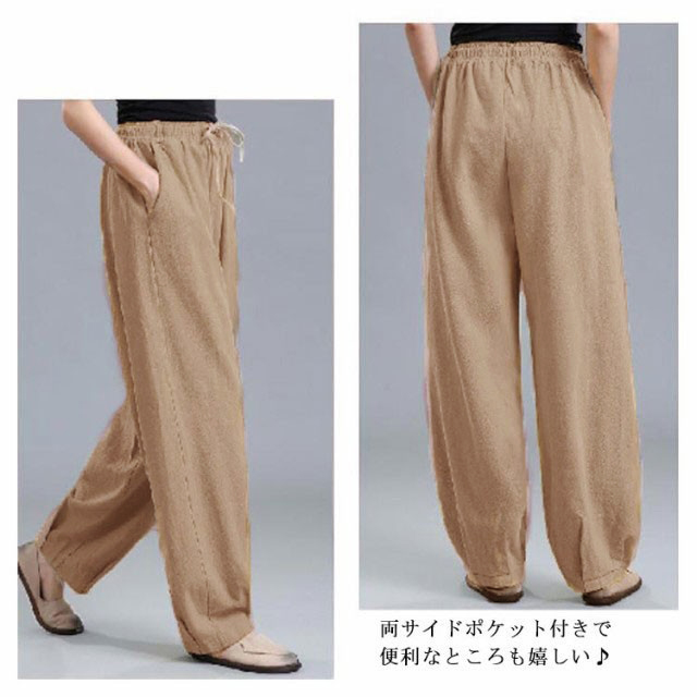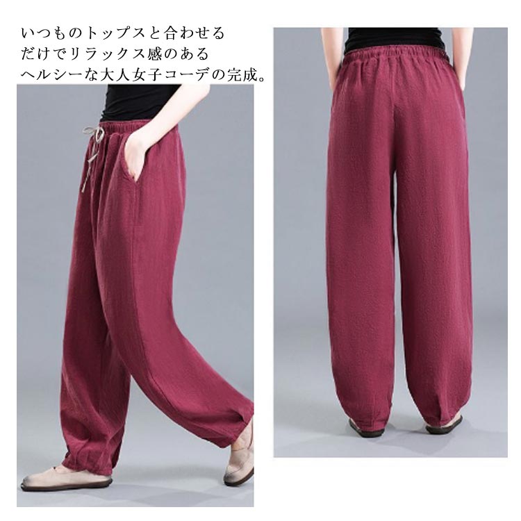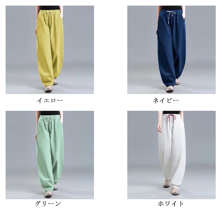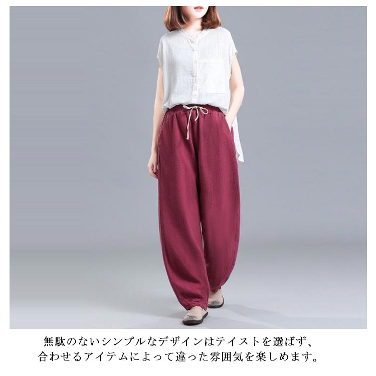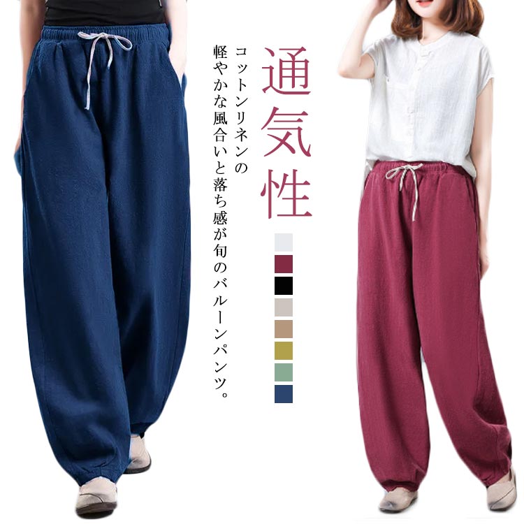 綿麻 バルーンパンツ レディース コットンリネン サルエルパンツ ワイドパンツ 綿 リネンパンツ ロングパンツ 長ズボン ウエストゴム ポケット ゆったり 体型カバー 大きいサイズ きれいめ 黒 紺色 ナチュラル 軽い リラックス カジュアル 春夏 秋 送料無料 M-5XL