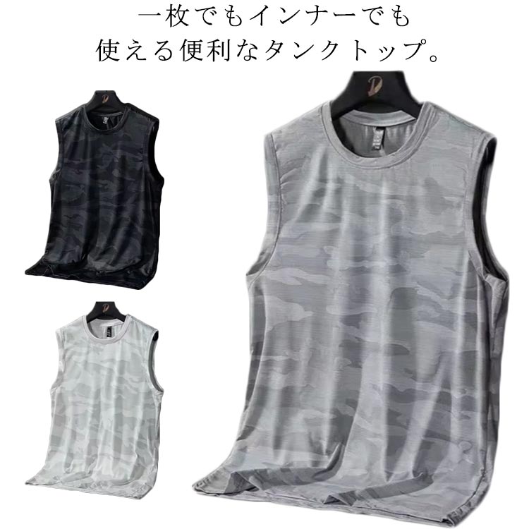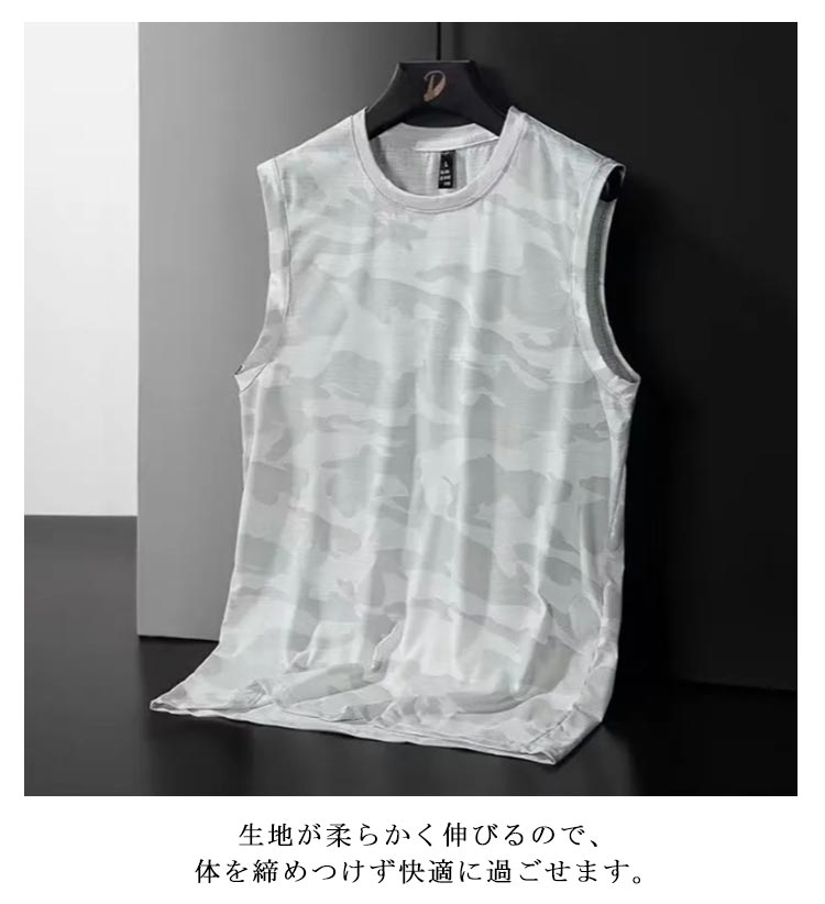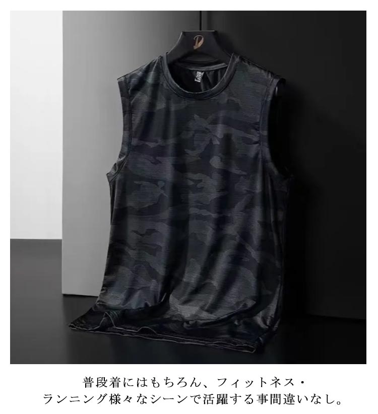 2枚セット タンクトップ メンズ ノースリーブ トップス ドライ メッシュ 接触冷感 ストレッチ 吸汗 速乾 インナー 男性 メッシュtシャツ 迷彩柄 伸縮性 ランニングシャツ ストリート ジム トレーニングウェア スポーツ カジュアル 大きいサイズ 春服 春 夏服 送料無料