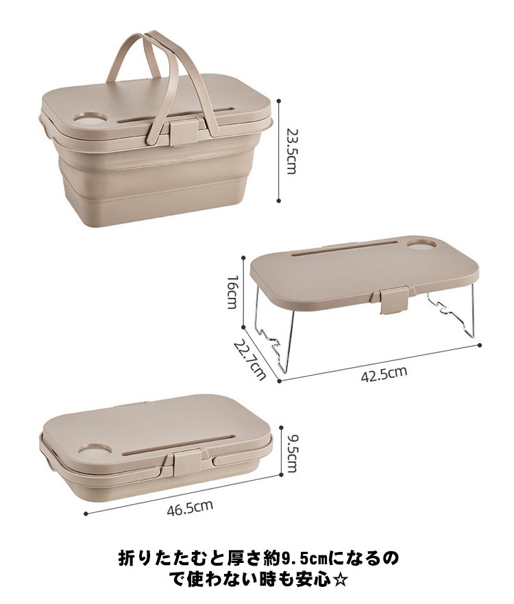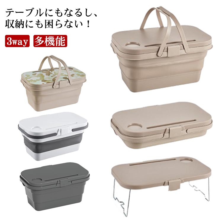 3way 多機能 ピクニック バスケット キャンプ 収納ケース 収納バスケット レジャー 持ち運び コンパクト収納 収納ボックス 持ち運び テーブル 折り畳みテーブル 折り畳みバスケット 折りたたみバスケット 蓋付き キャンプ用品