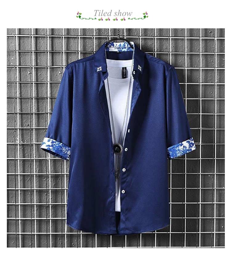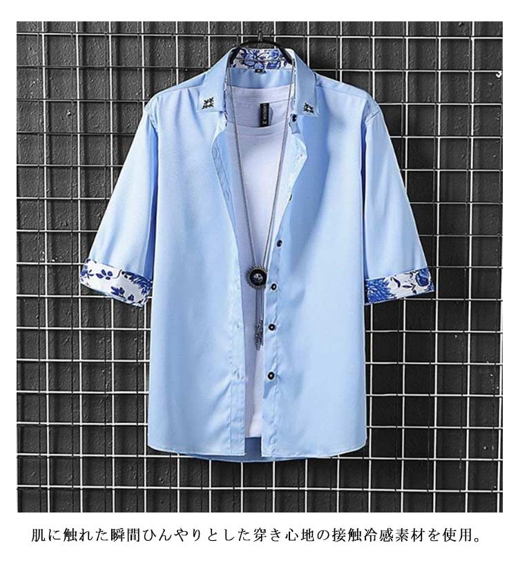 送料無料 七分袖 シャツ 冷感 メンズ カジュアルシャツ 夏 薄手 ひんやり 涼しい 接触冷感 シャツ アイスシルク シャツ ゆったり 大きいサイズ 紳士 春服 夏服 春 夏