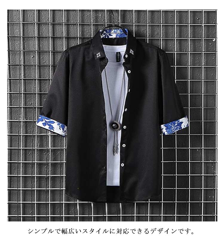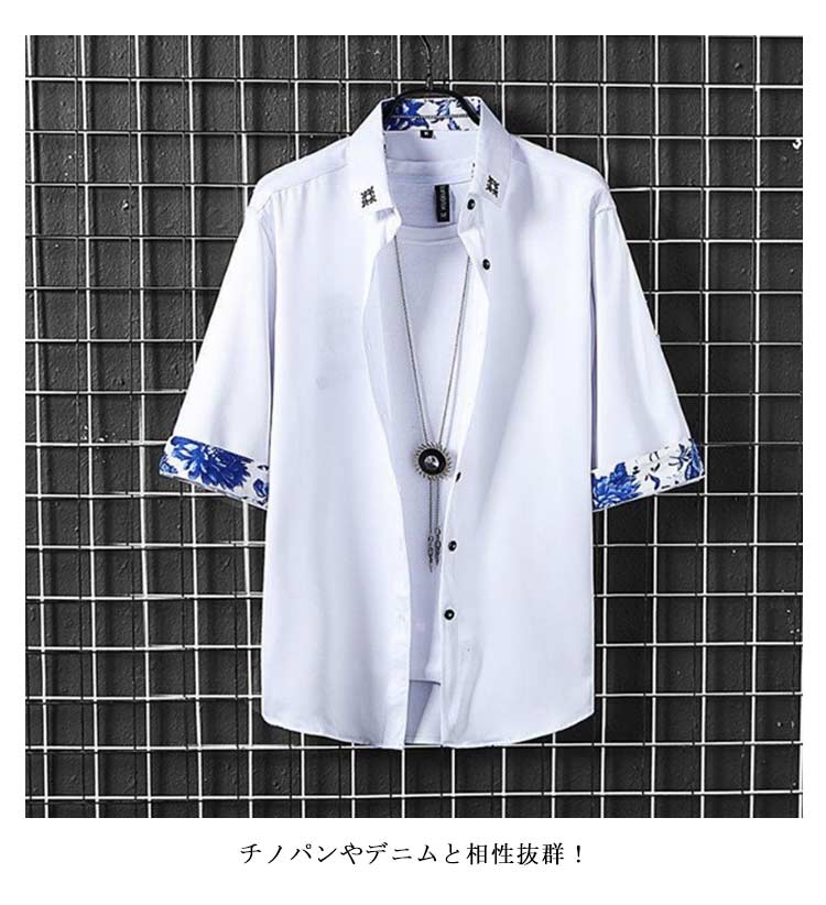 | 袖口と襟元に目を引く花柄をあしらった冷感素材の七分袖シャツ。 肌に触れた瞬間ひんやりとした穿き心地の接触冷感素材を使用。 チノパンやデニムと相性抜群! シンプルで幅広いスタイルに対応できるデザインです。 | |