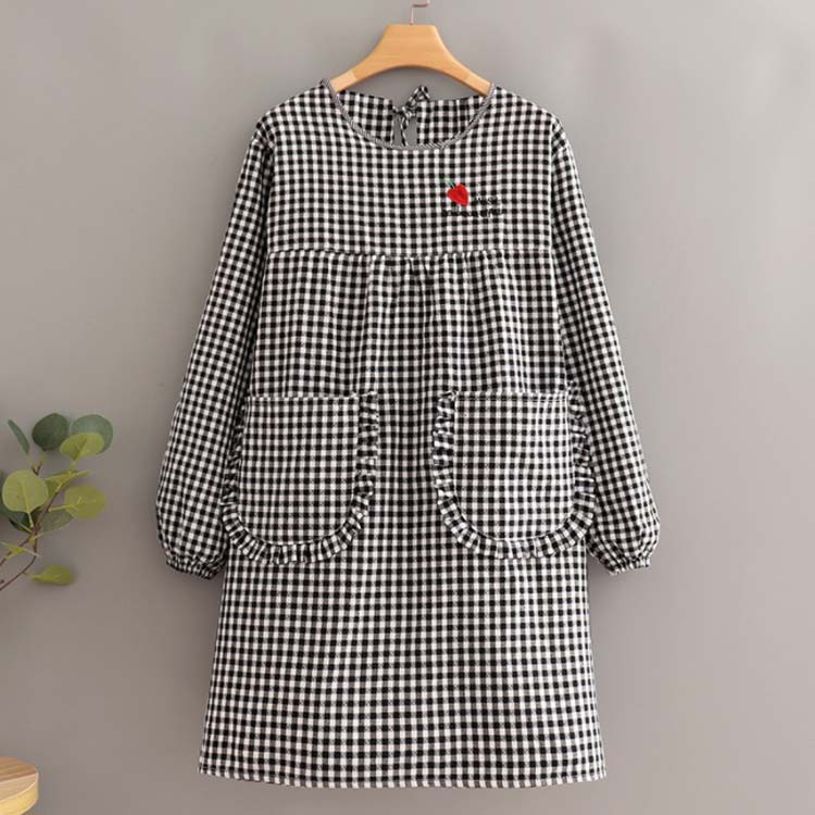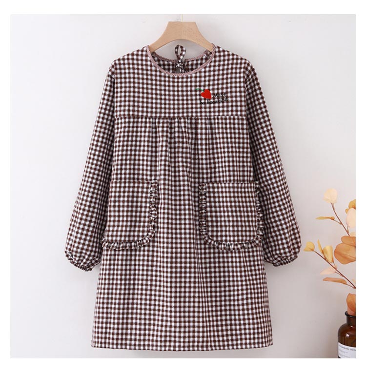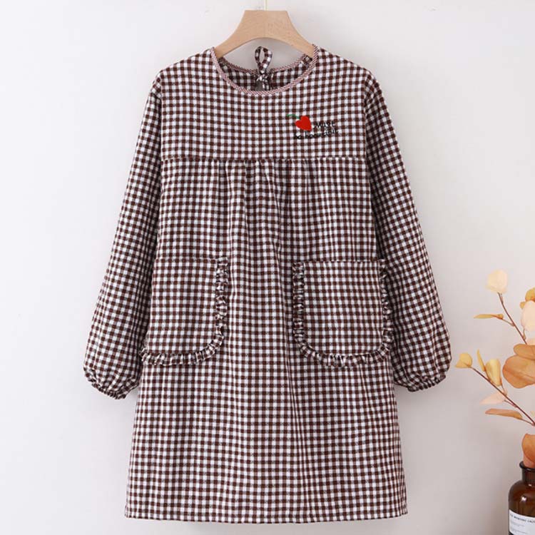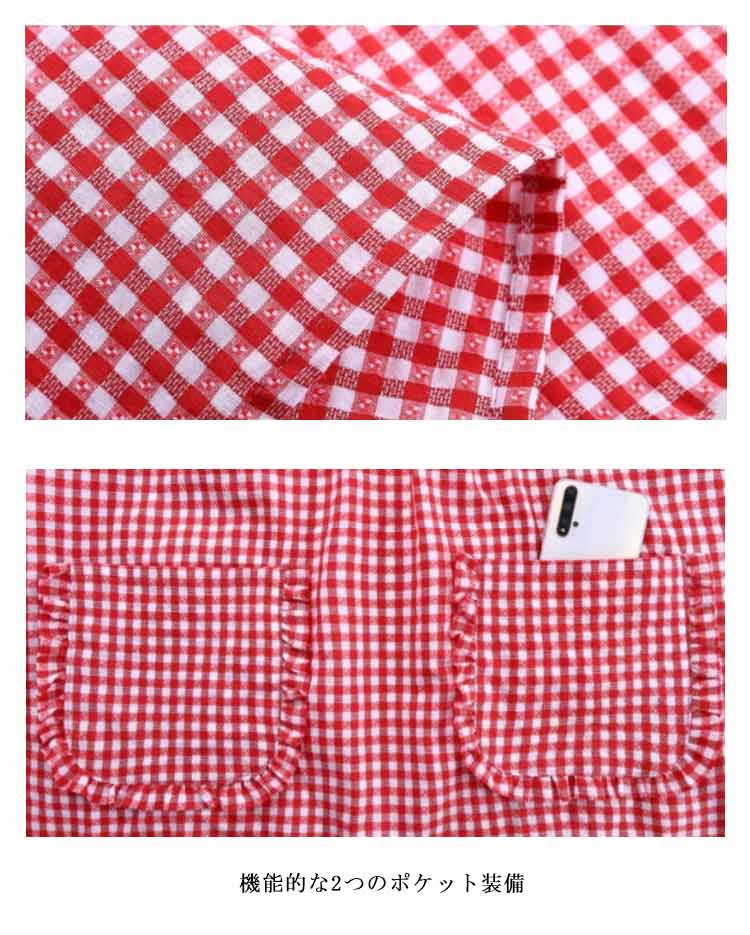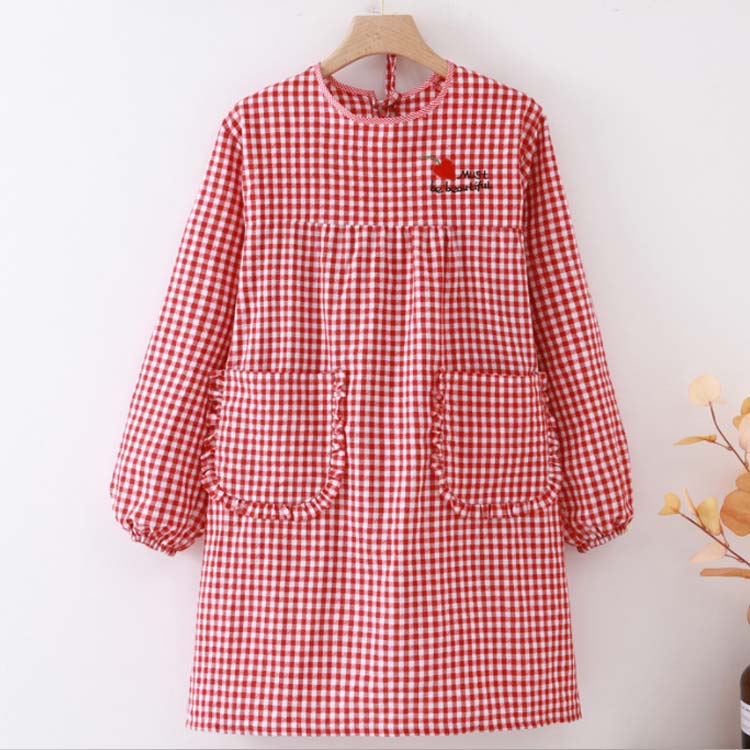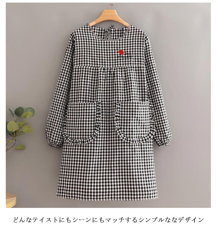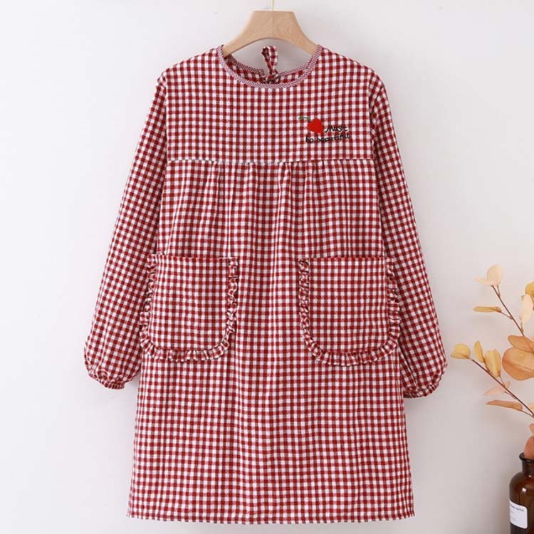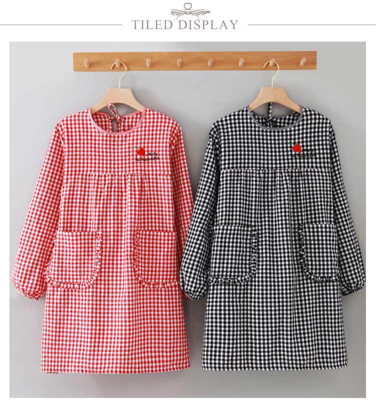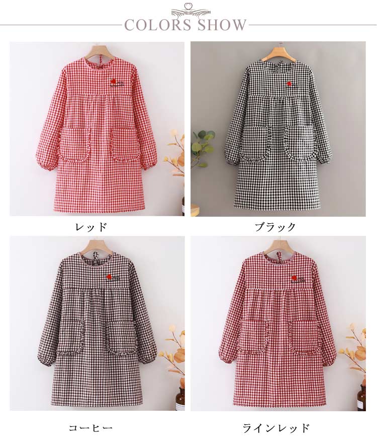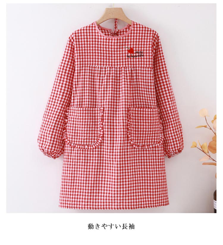 かっぽうぎ かっぽう着 割烹着 綿 かわいい 可愛い おしゃれ オシャレ エプロン レディース 大きいサイズ 袖付き長袖 ロング丈 おしゃれ 家事 料理 カフェ 北欧風 ポケット付き チェック柄 母の日 敬老の日 ギフト プレゼント 送料無料