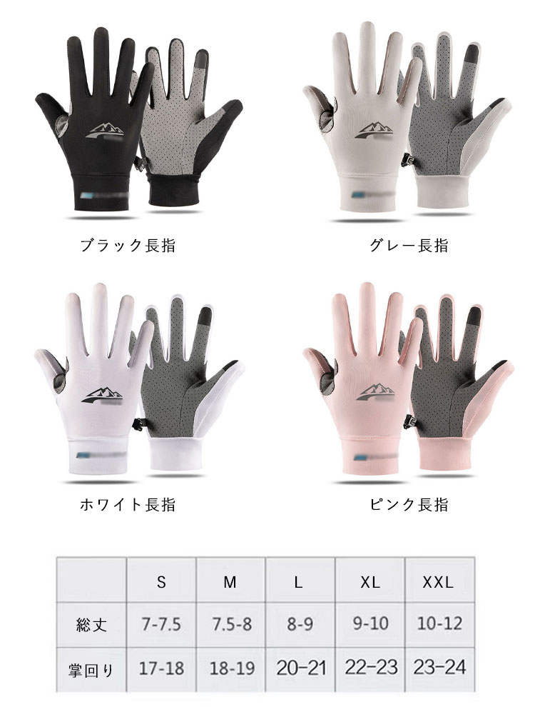 2タイプ選べる!サマーに最適の冷感グローブです。薄手の生地と、手のひらがメッシュになった涼しい使用感の手袋で、ムレにくく涼しく快適です。紫外線が気になる時にサッとつけるだけ、紫外線から日灼けしやすい手を保護できます。吸湿性、放湿性も優れているので、蒸れなくサラサラとしたつけ心地で夏でも快適ご使用いただけます。優れた伸縮性&高弾力、柔らかく快適で、手にフィットし、ソフトな肌触りがあります。手ひら部分には滑り止めが付き、ハンドルがしっかり握って、自動車の運転や自転車する時に最適、様々なアウトドアに大活躍してくれます。グローブを着用したままスマートフォンやタブレットPC等の操作も可能です。