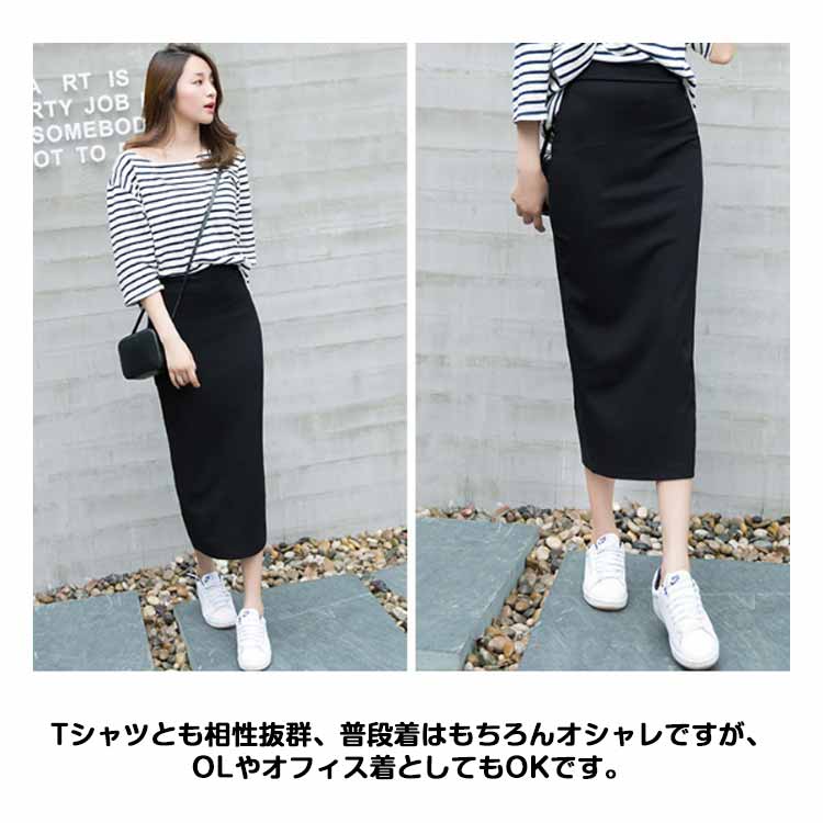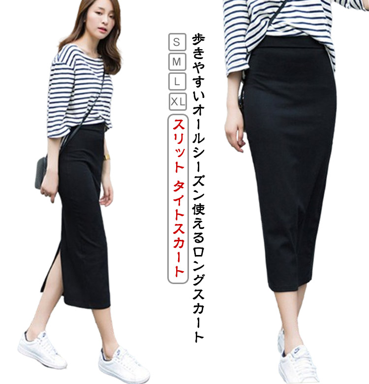 | 【スリット タイトスカート】【S M L XL】 ★歩きやすいオールシーズン使えるロングスカート ★ストレッチ抜群のリブ生地で動きやすいタイトスカート。 ★女性らしいかっこよく着こなせるHラインロングスカートで痩せ感UP、美脚効果できるのが嬉しいです。 ★シンプルなデザインで着回しやすく、きれいめにもカジュアルにも着こなせる便利な一枚です! ★程よくボディにフィットするタイトシルエットながら縦に入ったリブでスッキリとした印象に ★Tシャツとも相性抜群、普段着はもちろんオシャレですが、OLやオフィス着としてもOKです。 | |