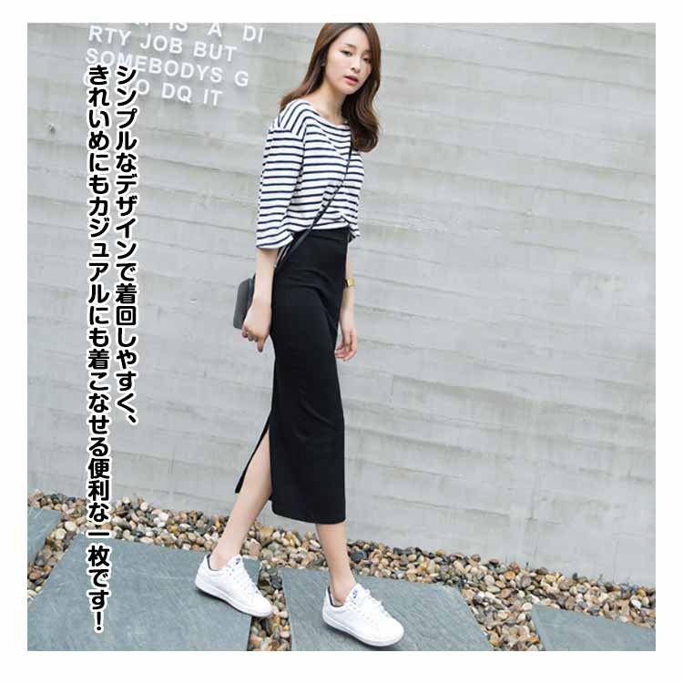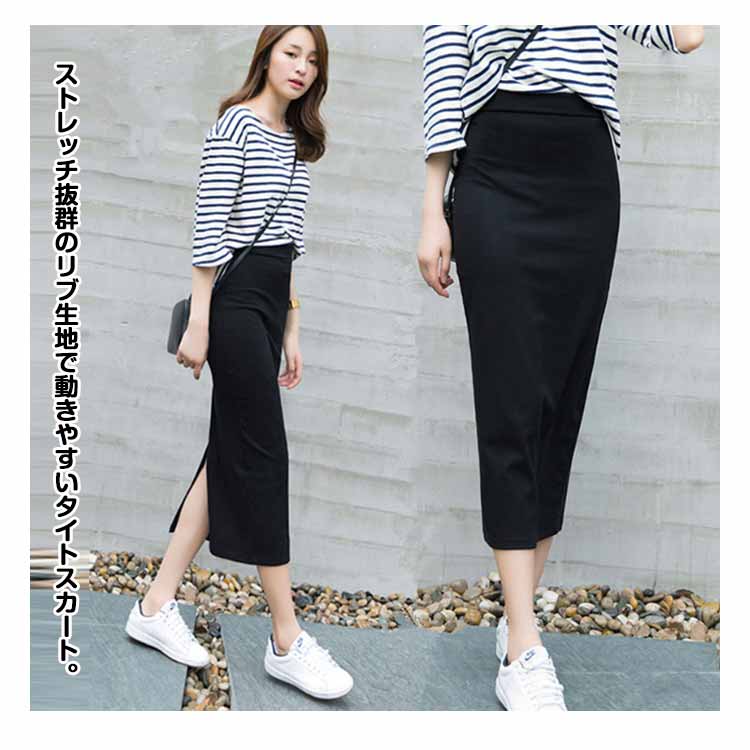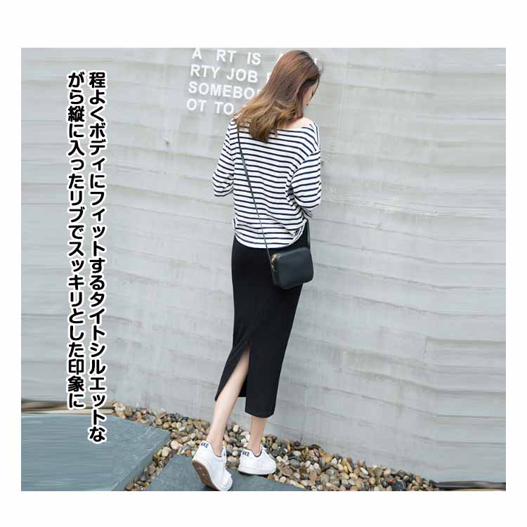 【スリット タイトスカート】【S M L XL】★歩きやすいオールシーズン使えるロングスカート★ストレッチ抜群のリブ生地で動きやすいタイトスカート。★女性らしいかっこよく着こなせるHラインロングスカートで痩せ感UP、美脚効果できるのが嬉しいです。★シンプルなデザインで着回しやすく、きれいめにもカジュアルにも着こなせる便利な一枚です!★程よくボディにフィットするタイトシルエットながら縦に入ったリブでスッキリとした印象に★Tシャツとも相性抜群、普段着はもちろんオシャレですが、OLやオフィス着としてもOKです。