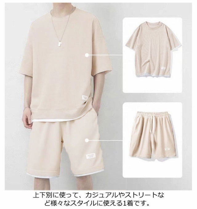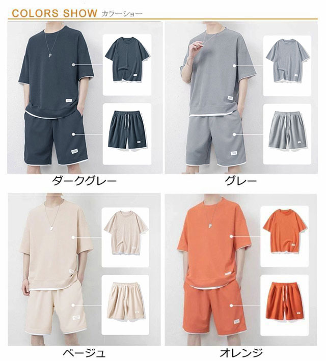 | M-5XL!サラリとした着心地の半袖トップス&ハーフパンツのセットアップ。 通気性に優れ、汗をかいても肌に張り付かず着心地バツグンです。 上下セットで着用することで、”キッチリ感”を演出し、きれいめな印象に仕上げます。 上下別に使って、カジュアルやストリートなど様々なスタイルに使える1着です。 夏のルームウェア、パジャマなどにもお使いいただけます。 部屋着だけでなく、花火大会や盆踊りなど夏のイベントにもオススメです。 | |