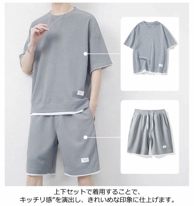 セットアップ メンズ 夏 ジャージ 上下セット スウェット Tシャツ ハーフパンツ 半袖 上下セット 短パン ルームウェア 部屋着 ゆったり おしゃれ ショートパンツ カジュアル 夏服 涼しい 無地 通気 M L XL 2XL 3XL 4XL 5XL 送料無料