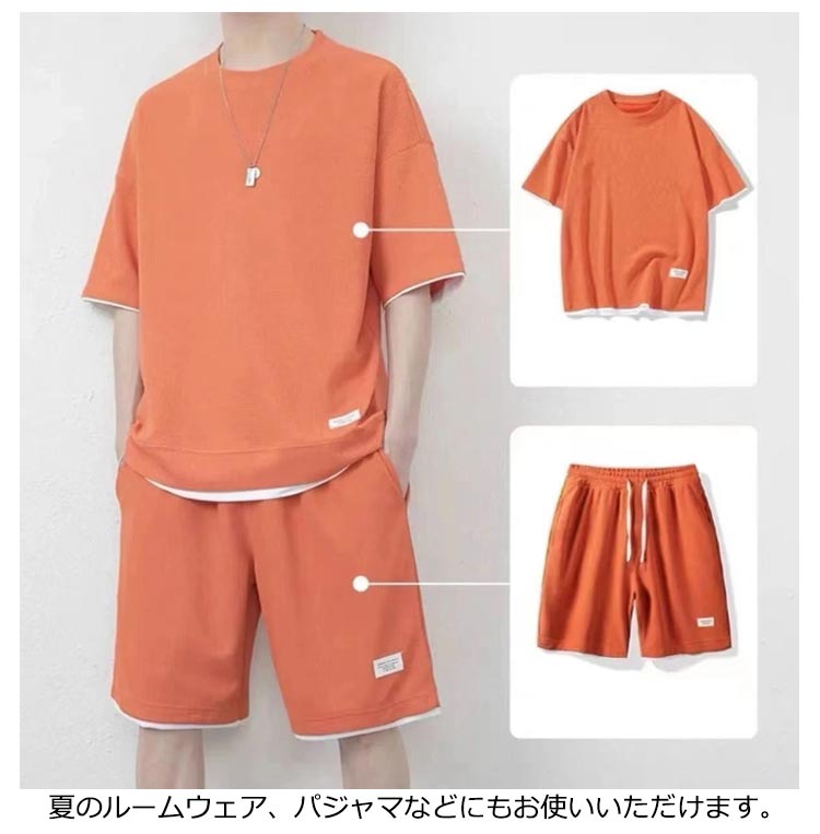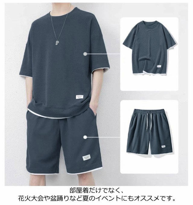M-5XL!サラリとした着心地の半袖トップス&ハーフパンツのセットアップ。通気性に優れ、汗をかいても肌に張り付かず着心地バツグンです。上下セットで着用することで、”キッチリ感”を演出し、きれいめな印象に仕上げます。上下別に使って、カジュアルやストリートなど様々なスタイルに使える1着です。夏のルームウェア、パジャマなどにもお使いいただけます。部屋着だけでなく、花火大会や盆踊りなど夏のイベントにもオススメです。