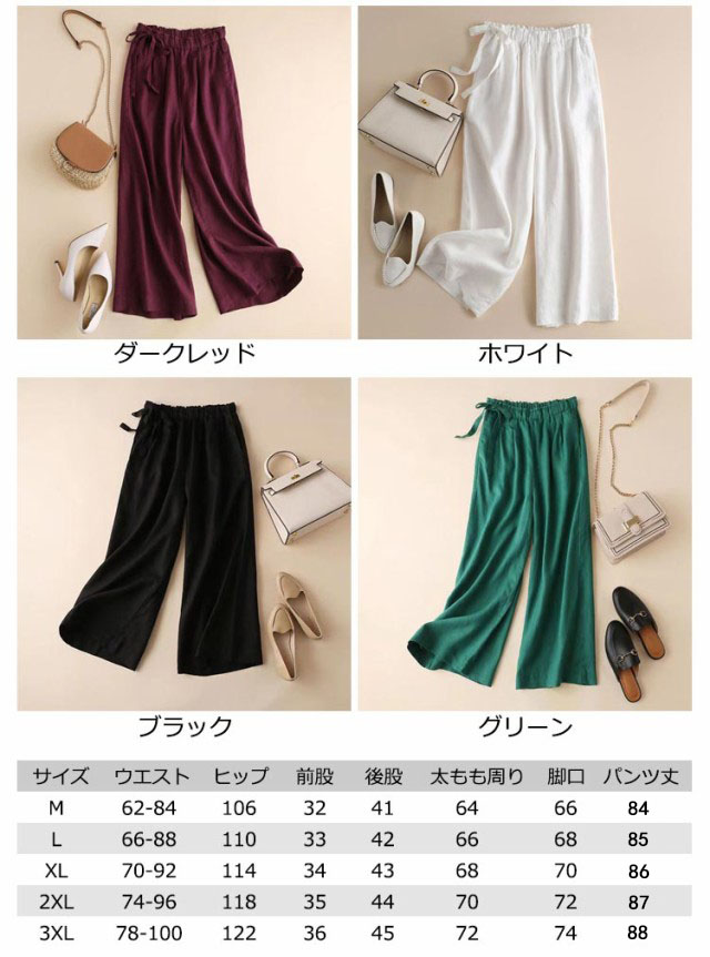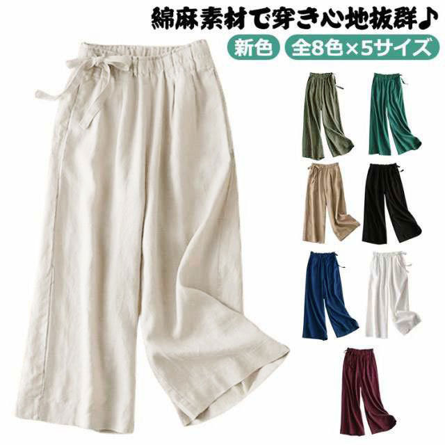 ワイドパンツ レディース きれいめ 大きいサイズ パンツ 麻 リネン 春夏 夏 楽ちん ボトムス 白 涼しい ゆったり ウエストゴム 綿麻 体型カバー 送料無料 ワイドパンツ レディース パンツロングパンツ 夏 涼しい 涼感